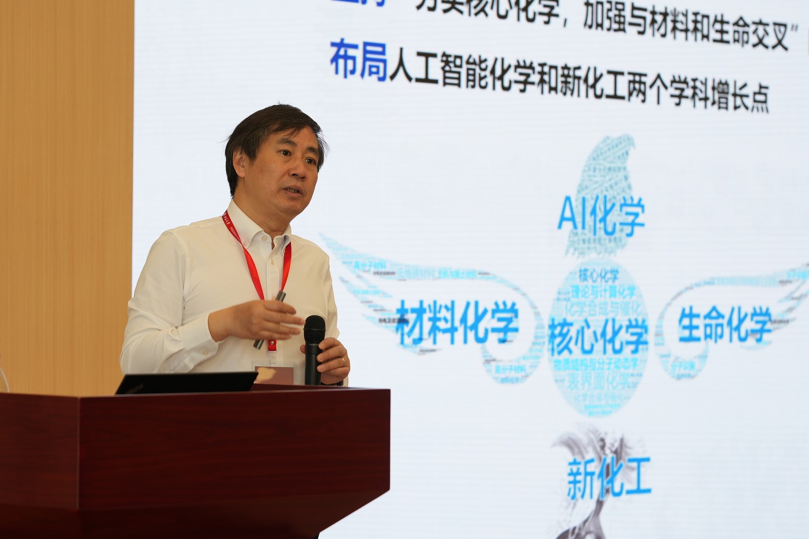 随后,化学学院党委书记裴坚作学院发展报告。北京大学化学学院历经百余年岁月沧桑,如今已成为具有重要国际影响的化学教育与研究机构。裴坚从科学研究、学生培养、服务社会和学院空间建设四方面介绍了学院发展成果,并诚挚邀请校友们参与学院发展的方方面面,在学院的历史中留下自己的名字。未来,学院也将携手广大校友,继续开疆拓土,不忘初心,砥砺前行!