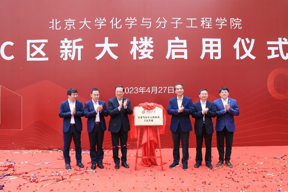 4月27日上午,北京大学化学与分子工程学院C区新大楼启用仪式在学院C区广场举行,郝平书记、龚旗煌校长、高松院士、厉伟校友、董志勇副校长、陈兴院长共同为C区新楼揭牌,标志着C区新楼正式启用。(详情可点击《北京大学化学与分子工程学院C区新大楼正式启用》)