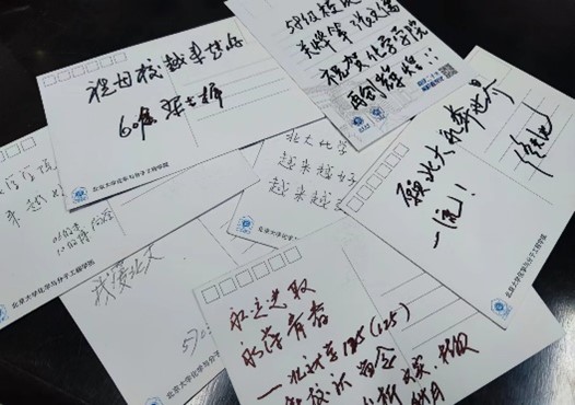 学院共累计接待校友800余名,发放卡套、徽章等纪念品1500余件。志愿者们主动协助年长的校友们办理电子校友卡、开具校友证明以便入校,引导校友们进入新楼游览并参观“化学学院近十年发展成就展”,部分校友还在明信片上留下了对学院的祝福。