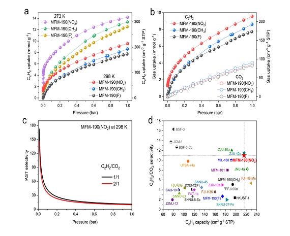 Figure 1. Adsorption data of C2H2/CO2 separation and C2H2 storage
