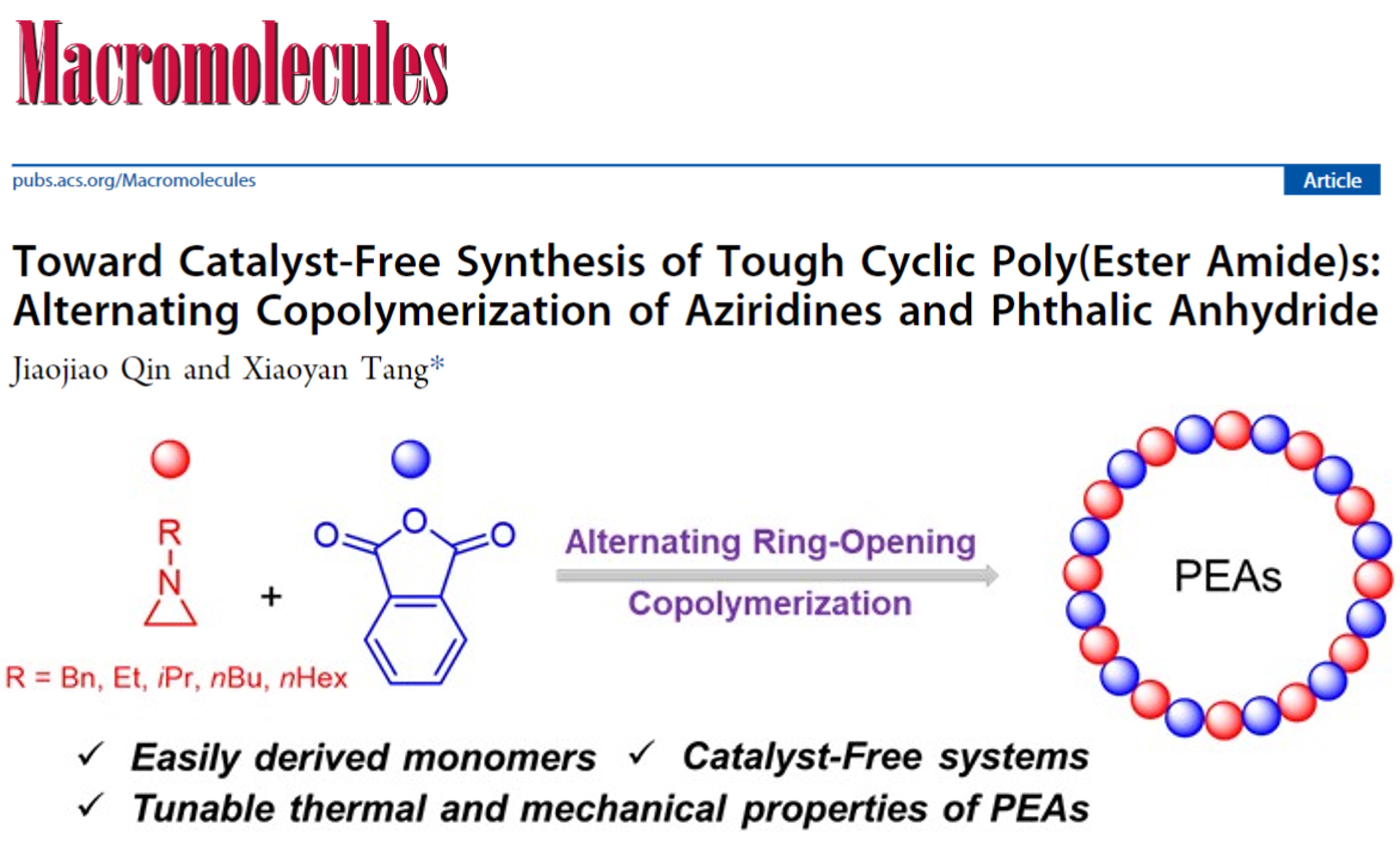 Our Group has realized metal-free polyerization to cyclic poly(ester amide)s