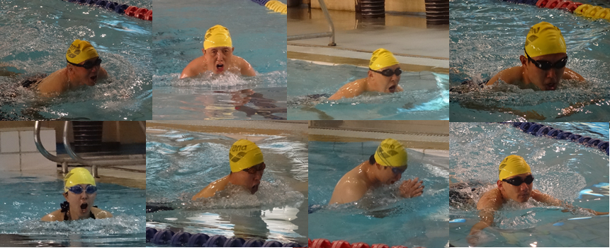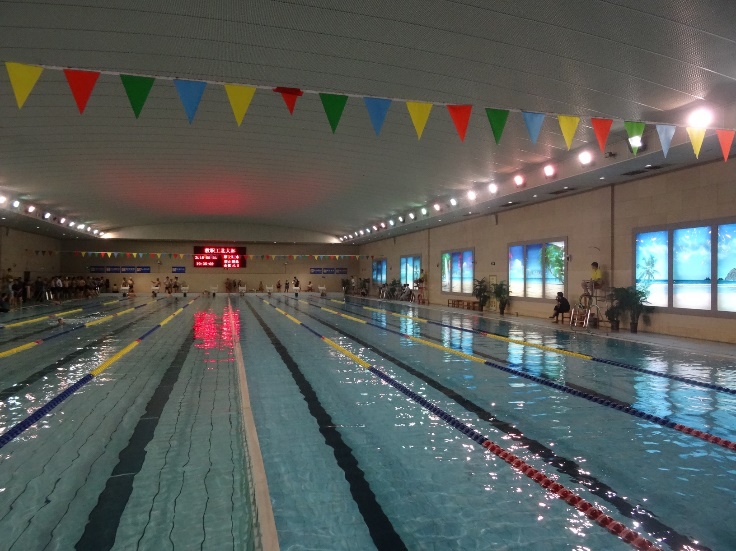 比赛首先进行的是由四名男运动员和两名女运动员完成的650米混合接力项目。化学学院派出的队伍是:杨展澜、简蓉、谢昌昊、厉建龙、董宏刚、刘志博。他们酷爱游泳,成绩较好且有丰富的比赛经验。虽然这支队伍在年龄上跨度近30岁,但他们齐心协力,奋力拼搏,最终以4分37秒36的好成绩在得分比重占比较高的团体项目中名列第三,不仅为化学学院挣得了分数,更为化学学院争得了集体项目的荣誉。
