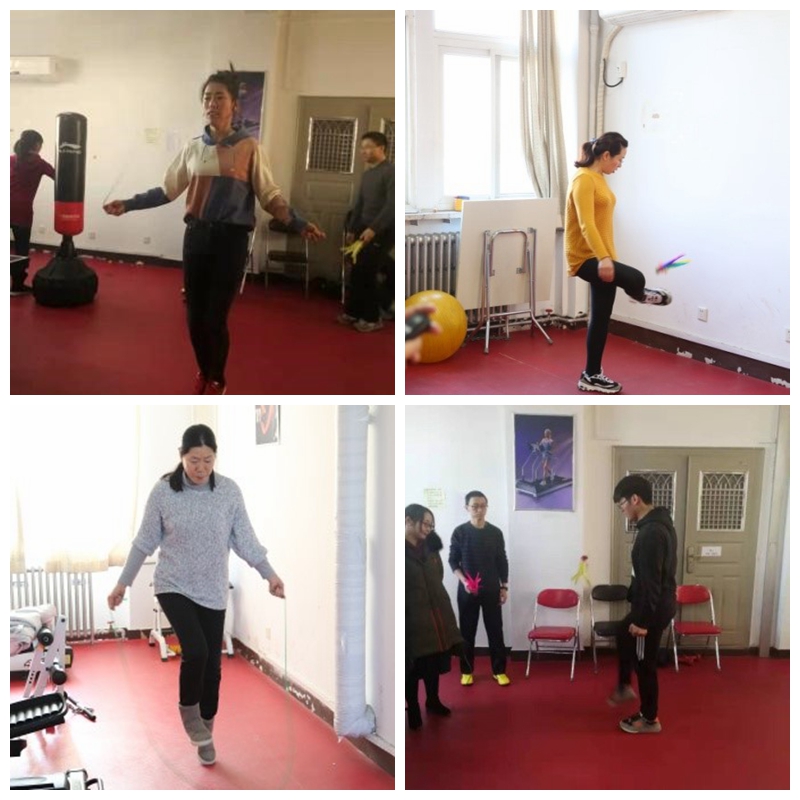 为丰富教职工的冬季体育运动,营造和谐、健康向上的工作氛围,积极倡导“全民健身”的体育精神,化学学院工会于2018年12月24日-2018年12月27日中午,在学院D区6层的健身活动室,组织了第四届踢毽子、跳绳比赛。