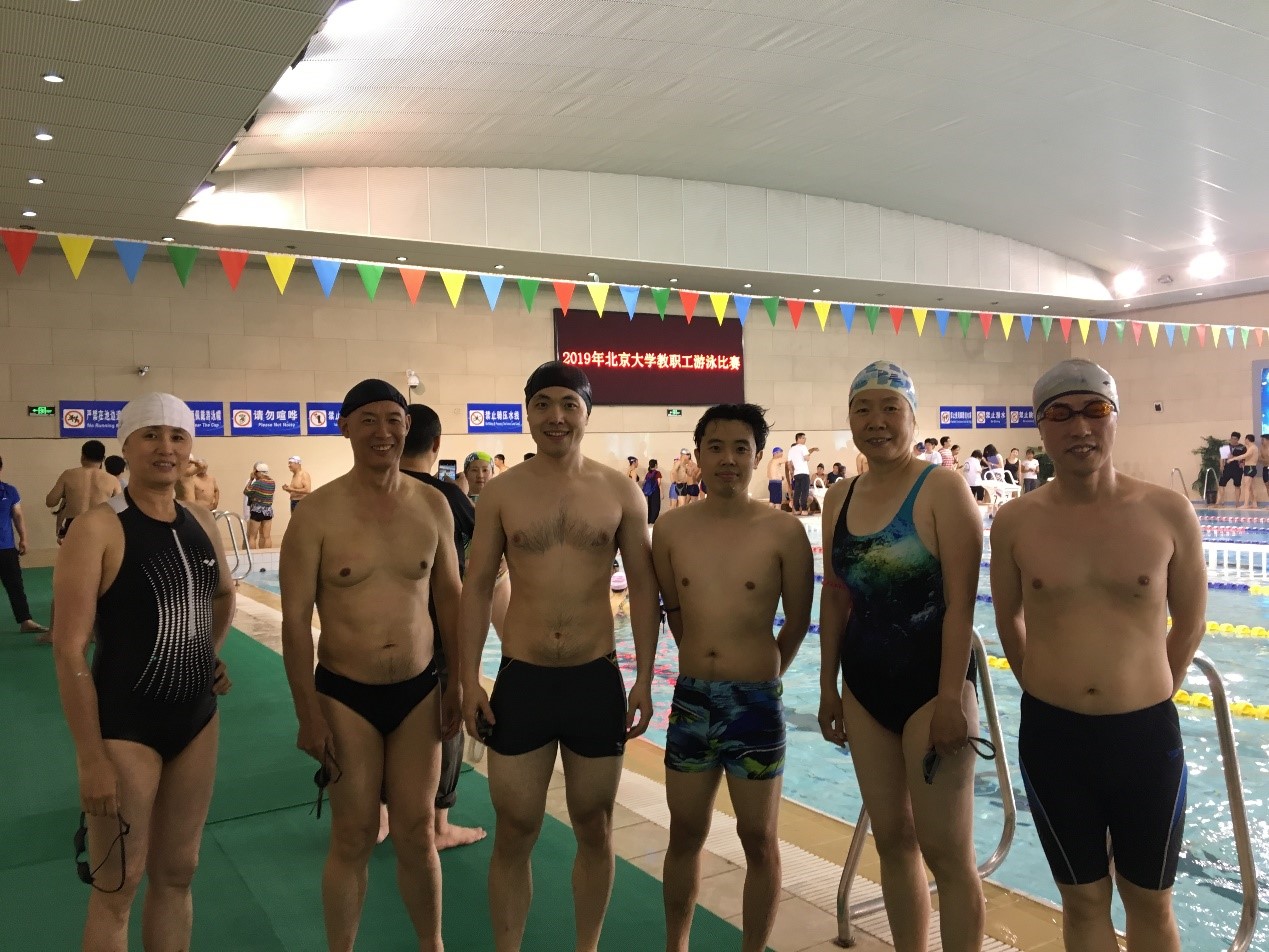 2019年6月5日晚,“2019年北京大学教职工游泳比赛”在邱德拔体育馆的游泳馆如期举行。今年,化学学院有24名游泳健儿参加比赛,是全校各院系和机关代表队中参赛人数较多的队伍之一。他们参加了6´50米接力、蛙泳、仰泳、自由泳和护花过河五大类19个小项的比赛。化学学院游泳健儿们经过4个多小时的拼搏,以总分126.5的成绩在全校45支代表队中位列第二。这是化学学院自2013年校工会重启全校教职工游泳比赛以来,又一次获得群众性体育运动的佳绩!