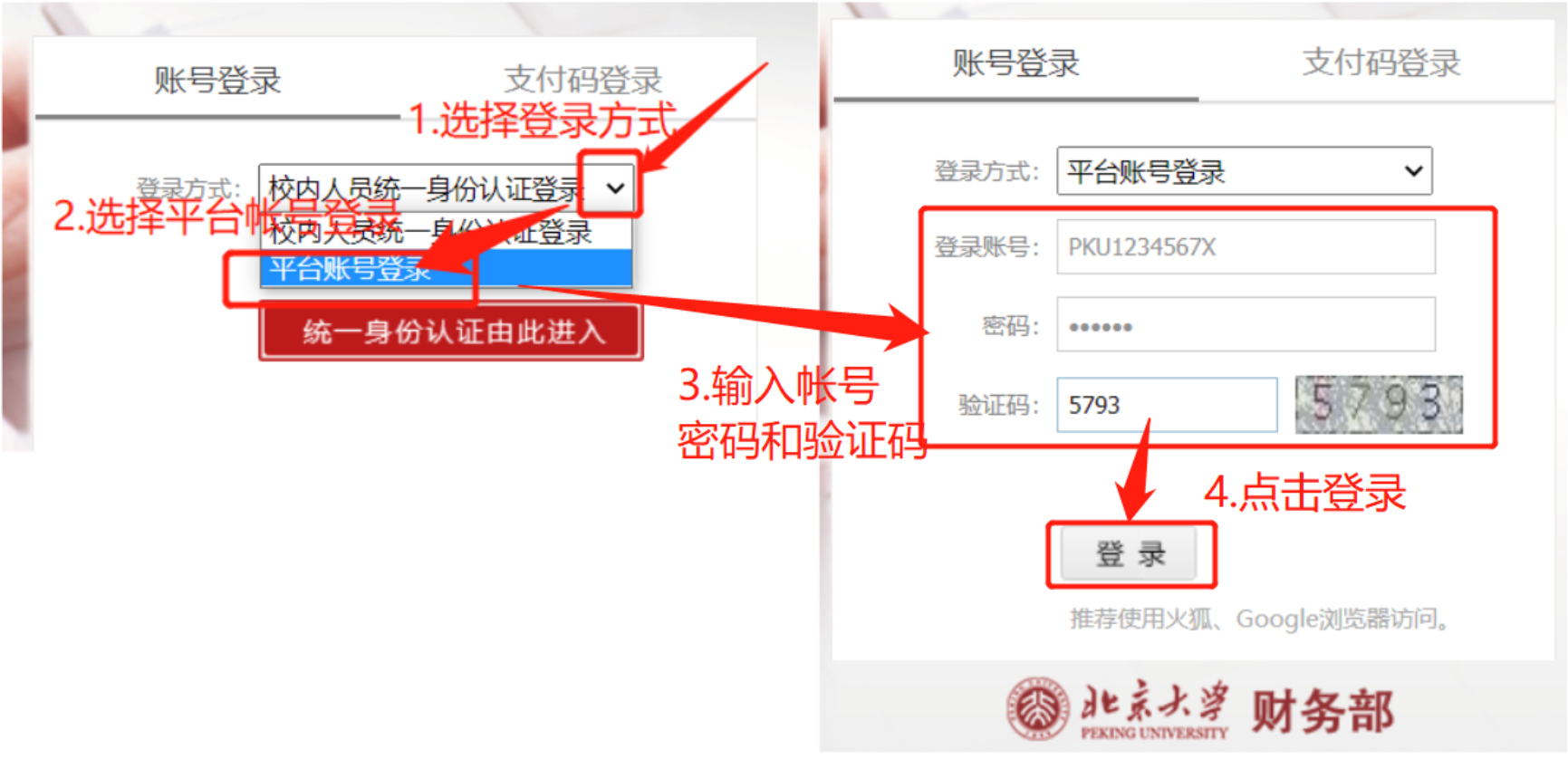 第二步:如下图选择平台帐号登录,并输入帐号、密码和验证码后点击登录。