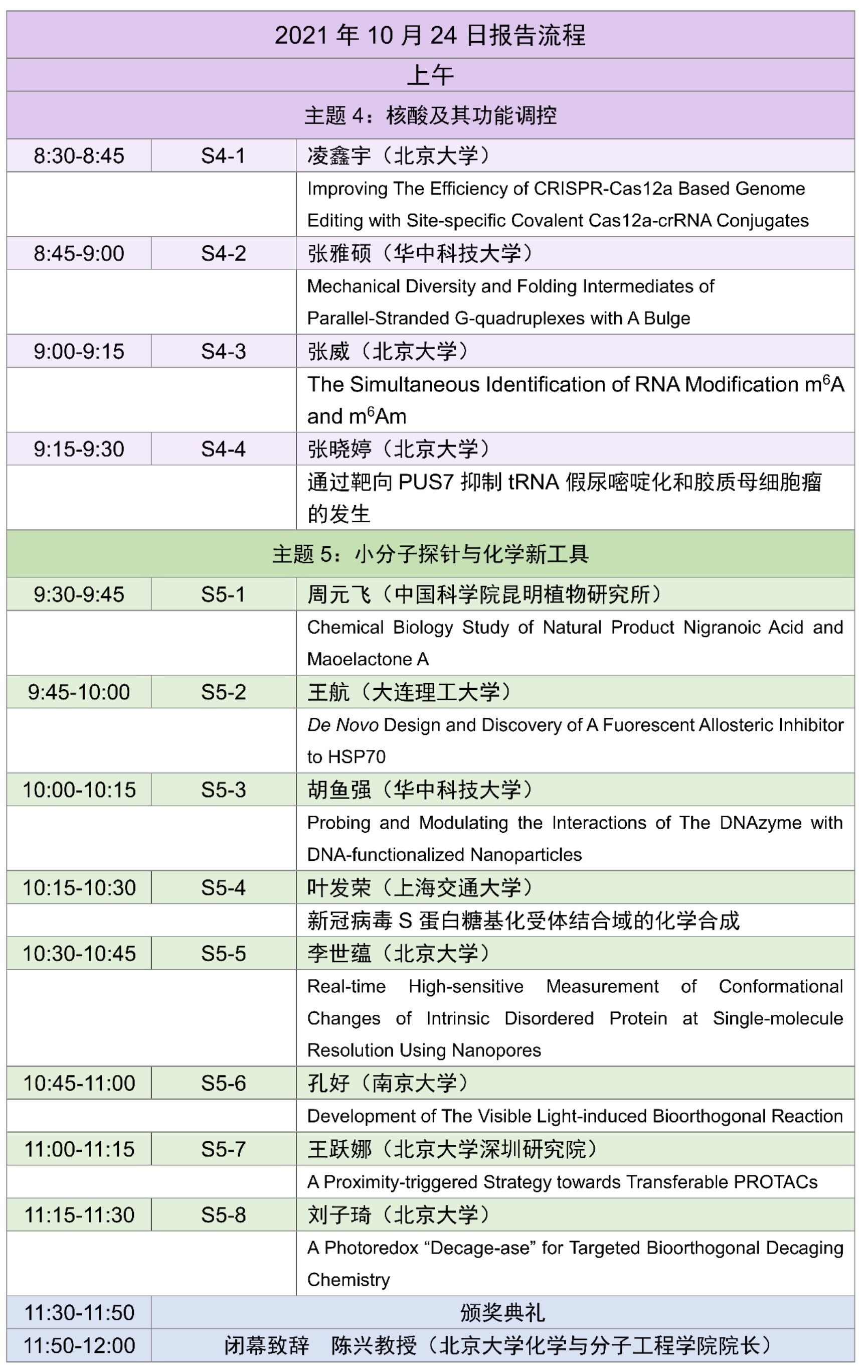 第三届化学生物学研究生论坛报名征稿阶段已经结束,感谢各高校和研究机构同学们的踊跃报名和对论坛的大力支持。组委会将已录用参会者的报告题目和相关信息整理成会议手册放在文末,请大家查收。我们谨代表北京大学化学生物学研究生论坛组委会,请同学们注意以下事项: