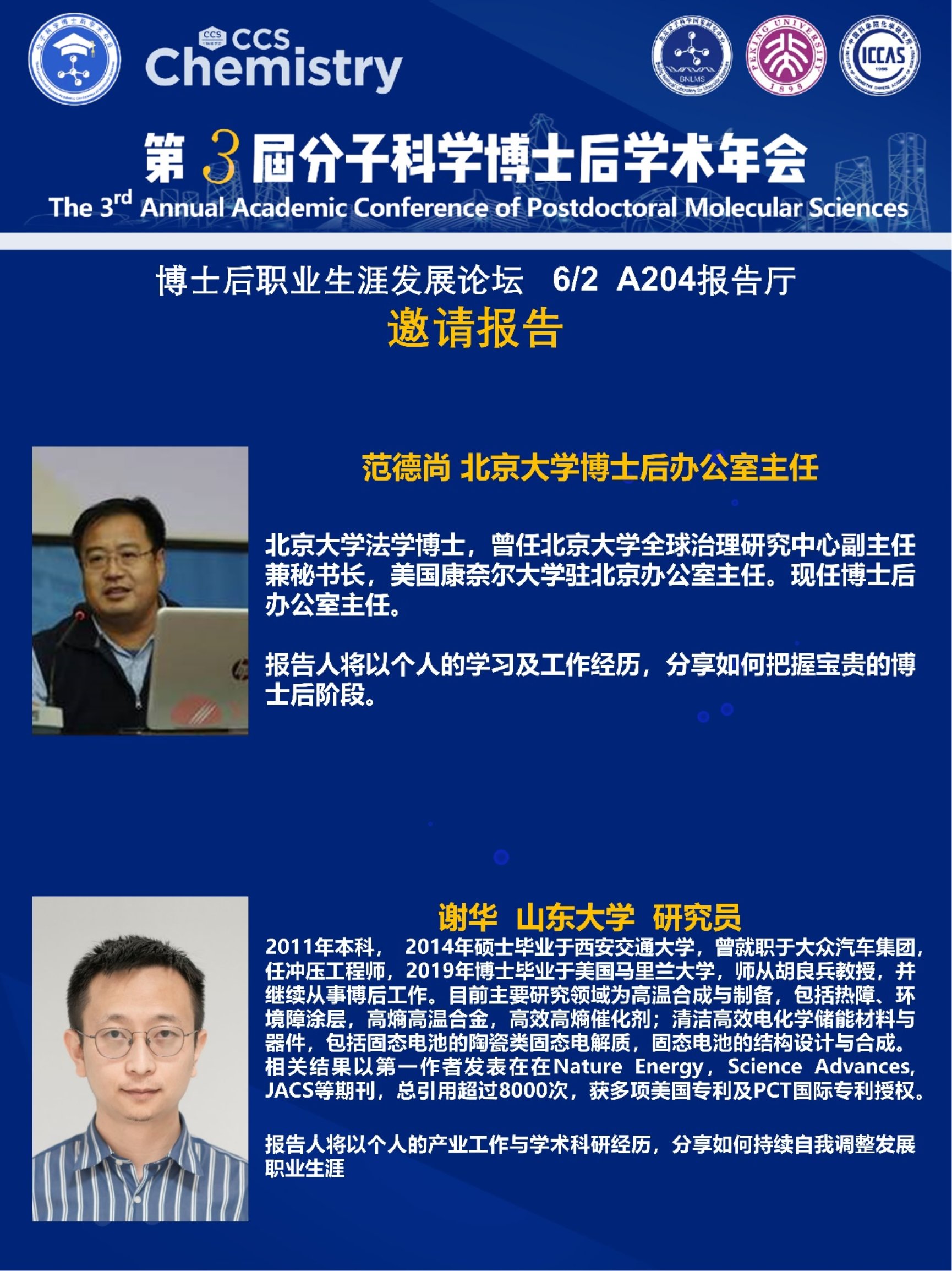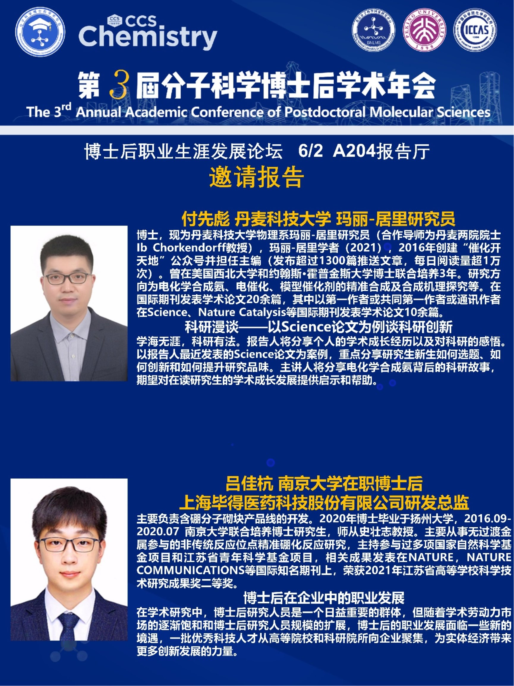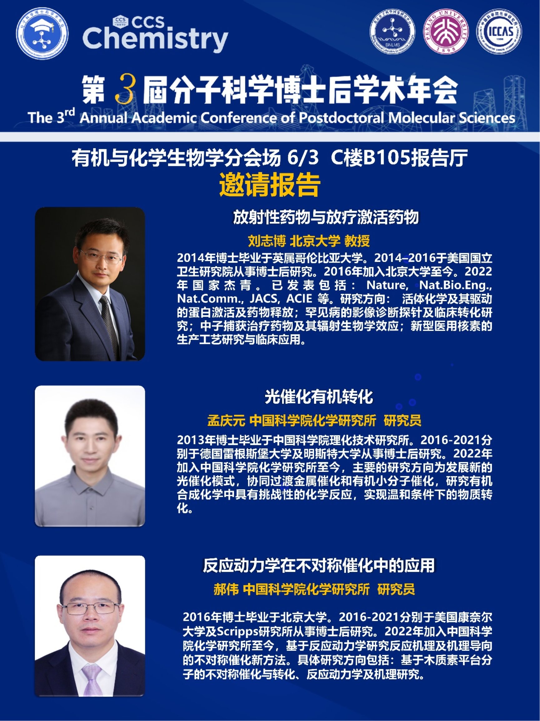 第3届分子科学博士后学术年会将于2023年6月1日-3日在北京大学召开。本届年会由北京分子科学国家研究中心、北京大学化学与分子工程学院和中国科学院化学研究所共同主办,中国科学院青促会化学与材料分会协办,现面向各科研院所、高校及企业博士后、博士生及专家学者教授发出诚挚邀请。