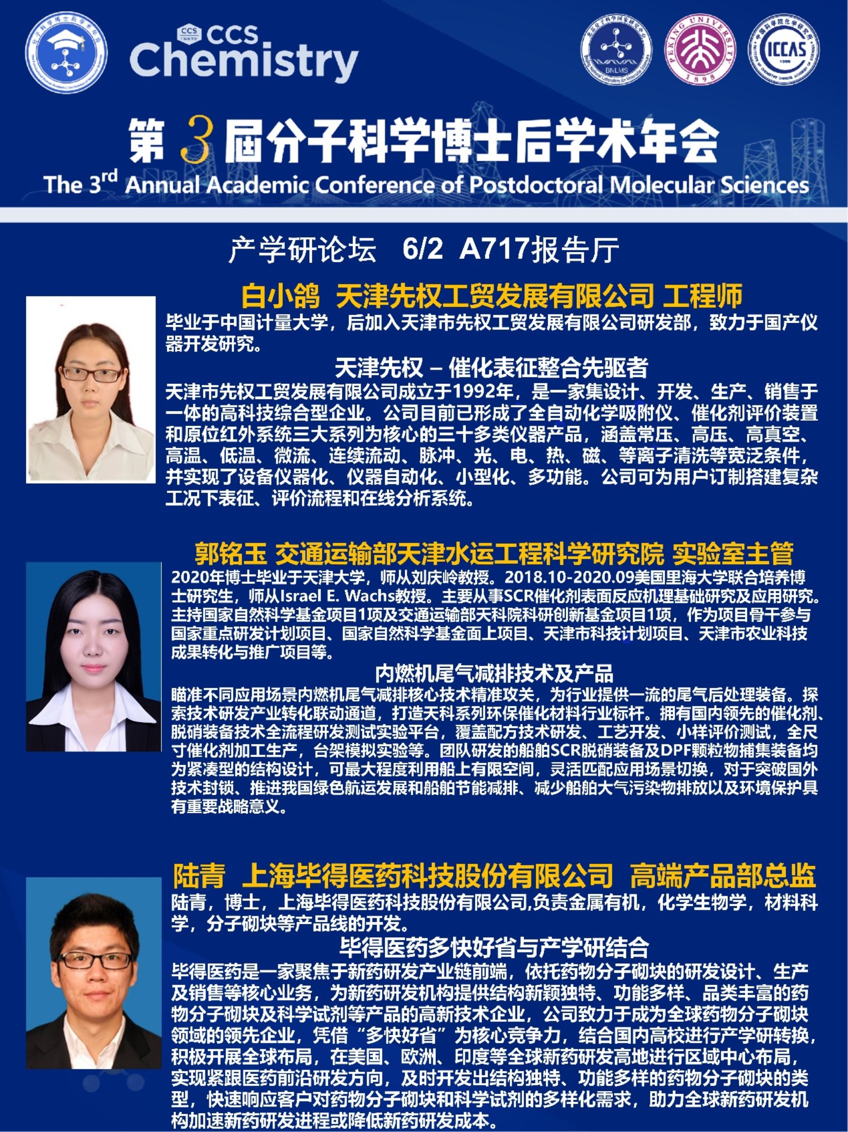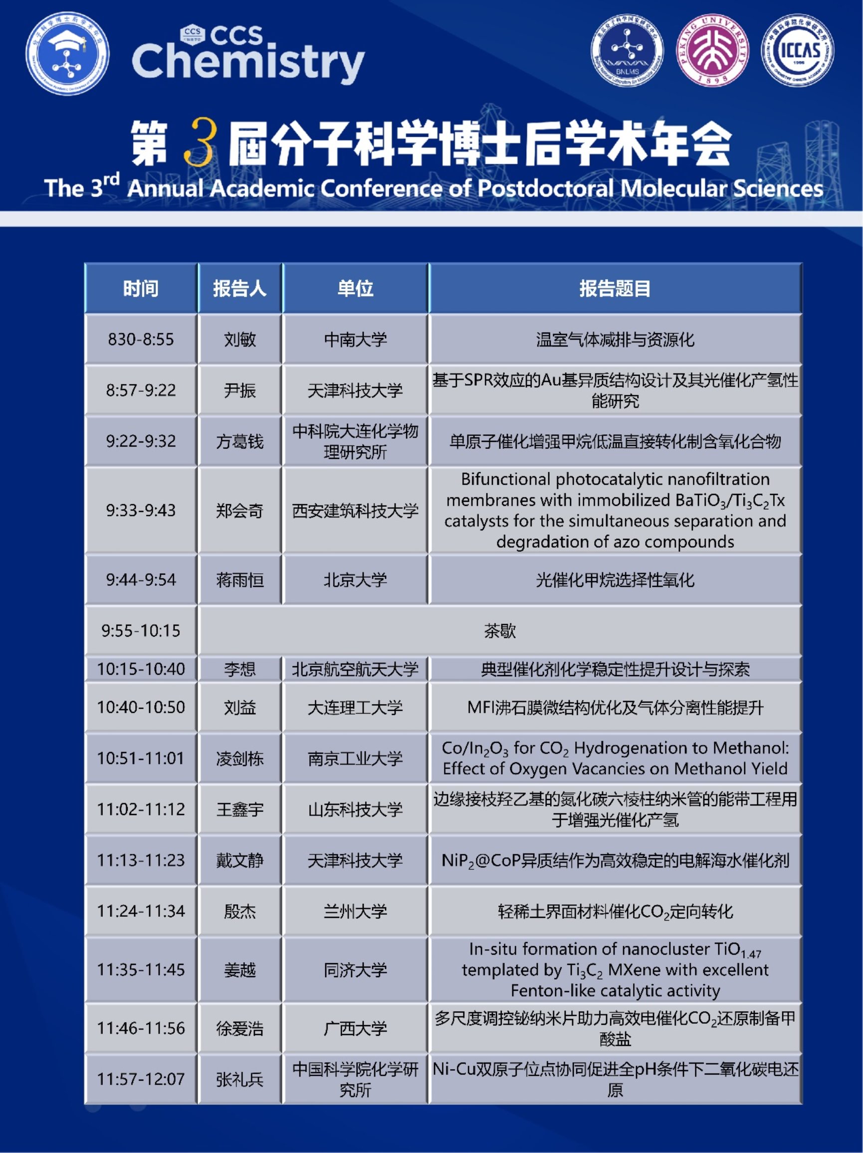 (6/3下午:催化化学与新化工,分子材料与纳米器件,有机与化学生物学,人工智能与计算化学)