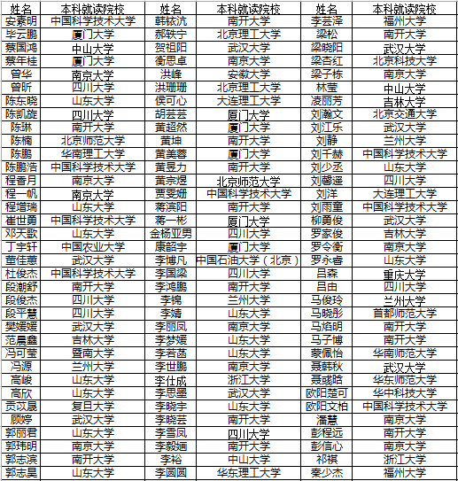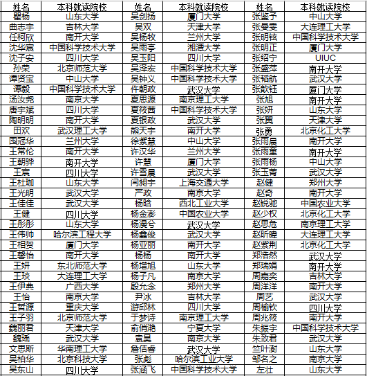 以下是2018年北京大学化学与分子工程学院“全国优秀大学生夏令营”确认参营名单(按姓氏拼音排序)。