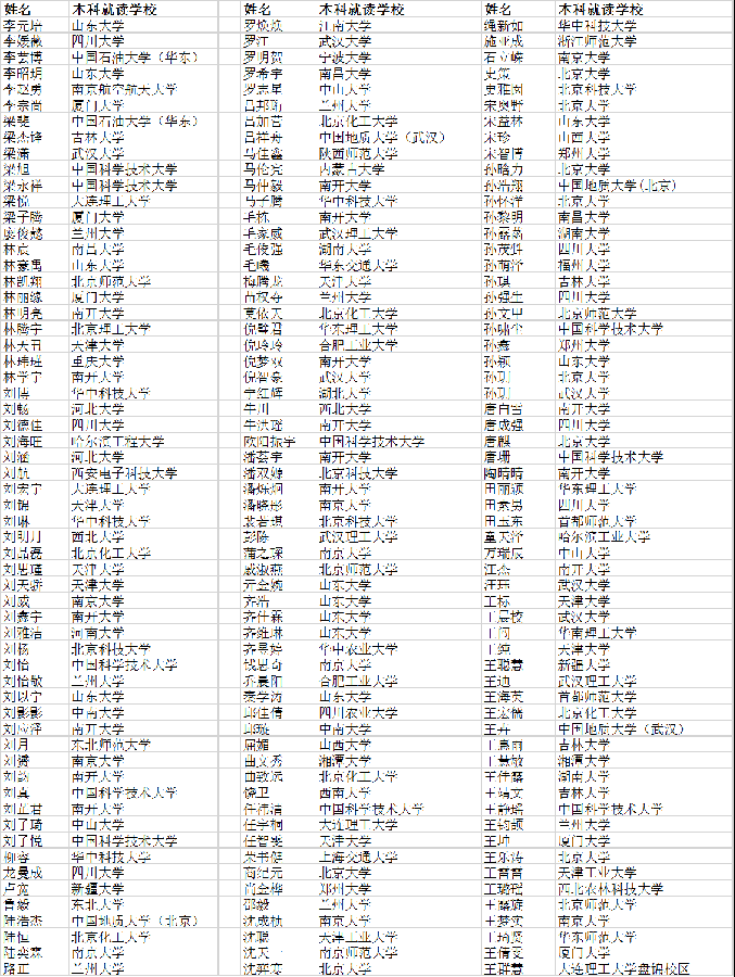 2017年化学学院全国优秀大学生夏令营材料寄达名单