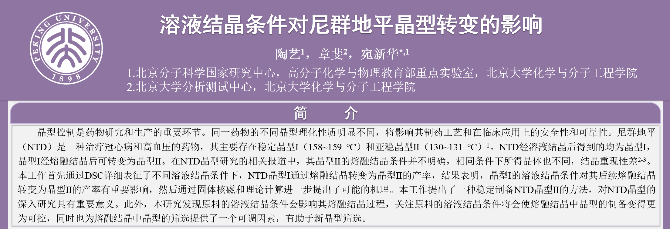 陶艺同学展出了自己关于“溶液结晶条件对尼群地平晶型转变的影响”的工作。