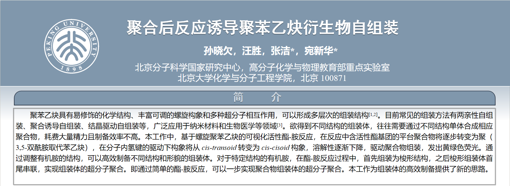 孙晓欠同学展出了关于“聚合后反应诱导聚苯乙炔衍生物自组装”的工作。