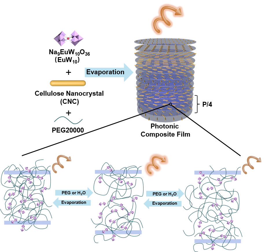 6. Multistimuli-responsive circularly polarized luminescent material of achiral Eu-containing polyoxometalates and cellulose nanocrystals