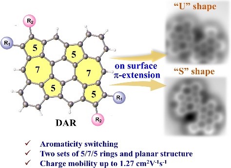 Diazulenorubicene as a Non-benzenoid Isomer of peri-Tetracene with Two Sets of 5/7/5 Membered Rings Showing Good Semiconducting Property, L.Y. Qin, Y.-Y. Huang, B.T. Wu, J.L. Pan, J.F. Yang, J. Zhang, G.C. Han, S.Y. Yang, L.L. Chen, Z. Yin, Y.L. Shu, L. Jiang, Y.P. Yi, Q. Peng, X. Zhou, C. Li, G.X. Zhang, X.-S. Zhang, K. Wu, D.Q. Zhang, Angewandte Chemie International Edition, 2023, 62,e202304632.