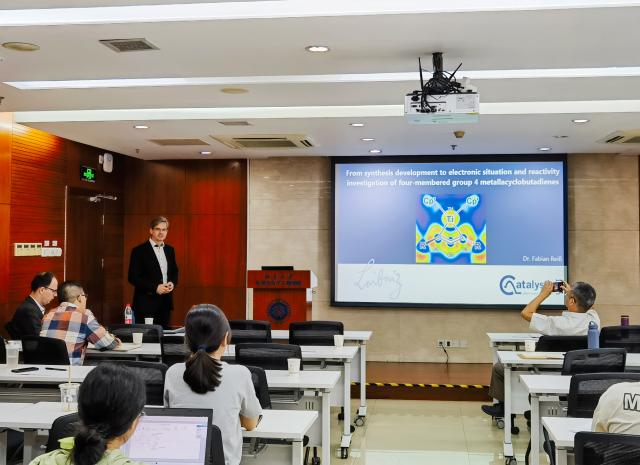 On Sep 11th, Prof. Torsten Beweries and Prof. Fabian Reiß from the University of Rostock, Germany, were invited to visit Peking University by Prof. Zhang. They toured our research facilities, had a group photo session with teachers and students, and delivered informative academic presentations at the Chemistry Building in the afternoon. To conclude the visit, Prof. Xi, Prof. Zhang, Prof. Huang, and Dr. Wei joined them for a group photo, cementing the bonds of collaboration and knowledge exchange.