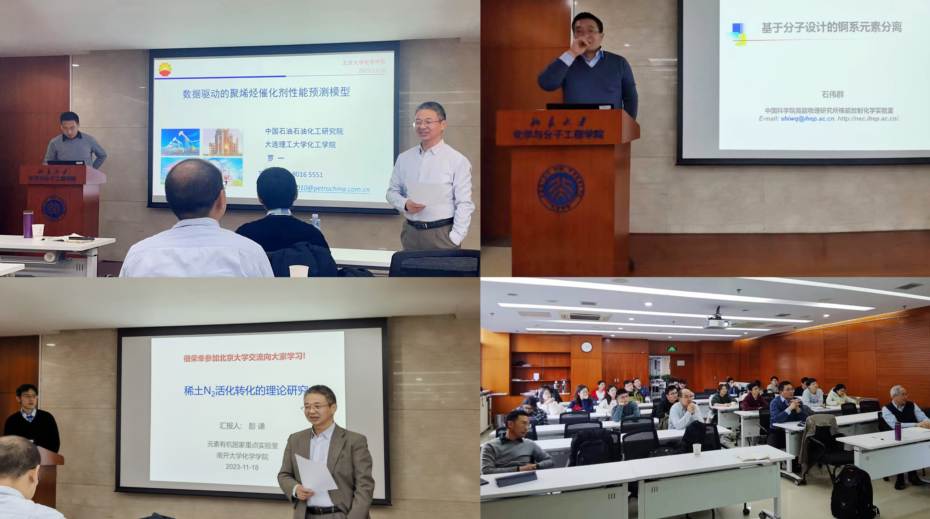 On Nov 18th, our lab welcomed Prof. Yi Luo, Prof. Weiqun Shi, and Prof. Qian Peng for impactful presentations in the A717 meeting room. They covered topics such as "Predictive Model for Data-Driven Polar Polyene Aggregation", "Actinide Element Separation through Molecular Design", and "Theoretical Study on Rare Earth N2 Activation".