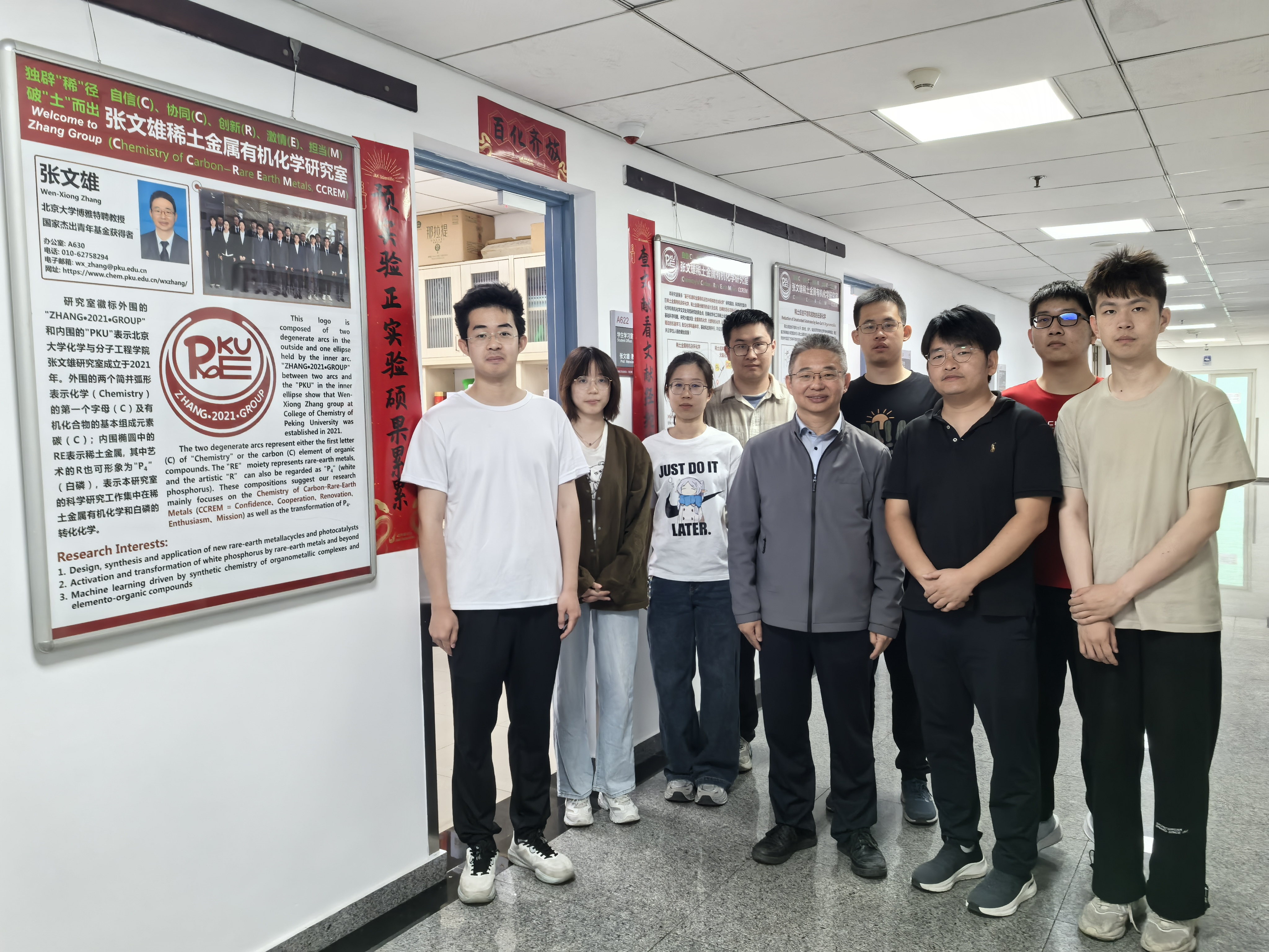 On May 12, Prof. Ruyi Zhu from the National University of Singapore was invited to give an academic lecture at the College of Chemistry and Molecular Engineering, Peking University. During his visit, Prof. Zhu, accompanied by Prof. Zhang, toured our lab and took a group photo with us. Prof. Zhu is currently a faculty member at the National University of Singapore, where his research focuses on DNA catalysis and novel synthetic strategies in RNA biomedicine. We sincerely thank Prof. Ruyi Zhu for his visit!