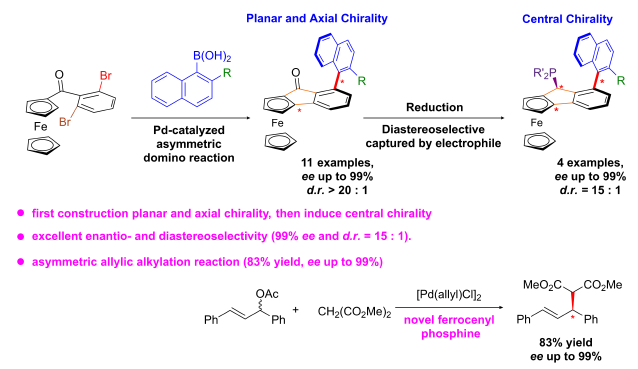 209. Congyu Gao, Ting Ren, Yuanyuan Liu, Xiangkun Meng, Junpeng Liu, Zeli Song, Jianfeng Hu, Yong Yang*, Wen-Xiong Zhang*, and Hao Zhang*, Enantioselective Construction of Planar, Axially and Central Chiral Ferrocenyl Phosphines via a Pd-Catalyzed Domino Reaction and Diastereoselective Phosphination,