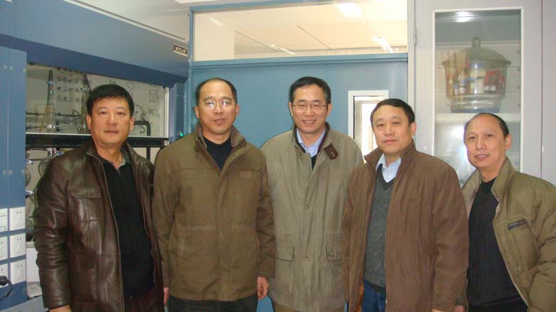 河南省化学研究所所长赵永德研究员(河南省化学会副理事长)、副所长李继研究员、赵亮研究员、侯益民研究员(河南省化学会秘书长)一行4人2009年元月10日莅临本研究室参观、访问。