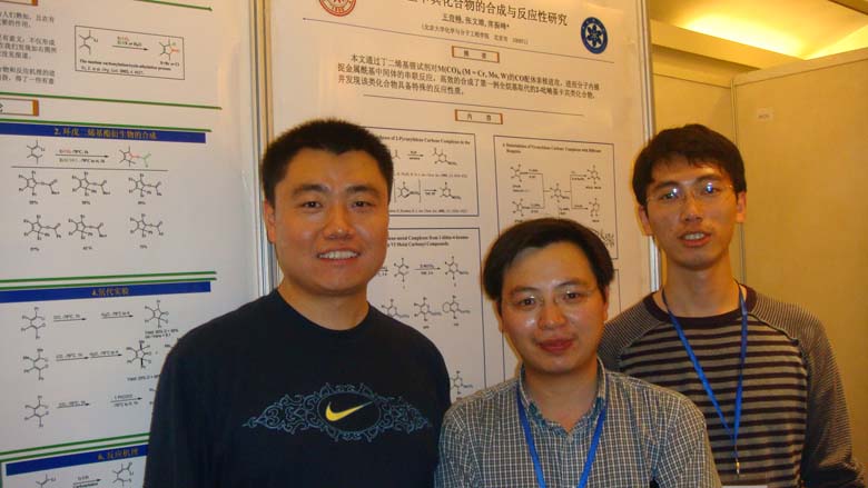 由中国化学会主办,中国科学院上海有机化学研究所承办的第十五届全国金属有机化学学术讨论会于2008年10月20-23日在南京举行。我们小组席振峰老师、张文雄老师、以及王超博士、刘澜涛和王奇峰同学参加了会议。席老师在祝贺陆熙炎院士八十华诞专场上做报告。张老师做了分组口头报告,王超博士、刘澜涛和王奇峰同学分别做了墙报展讲。还在国外开展博士后研究工作的邓亮博士也参加了这次会议并做了分组口头报告。会议期间席老师等人还参观了南京大学化学学院郑和根教授的研究室。