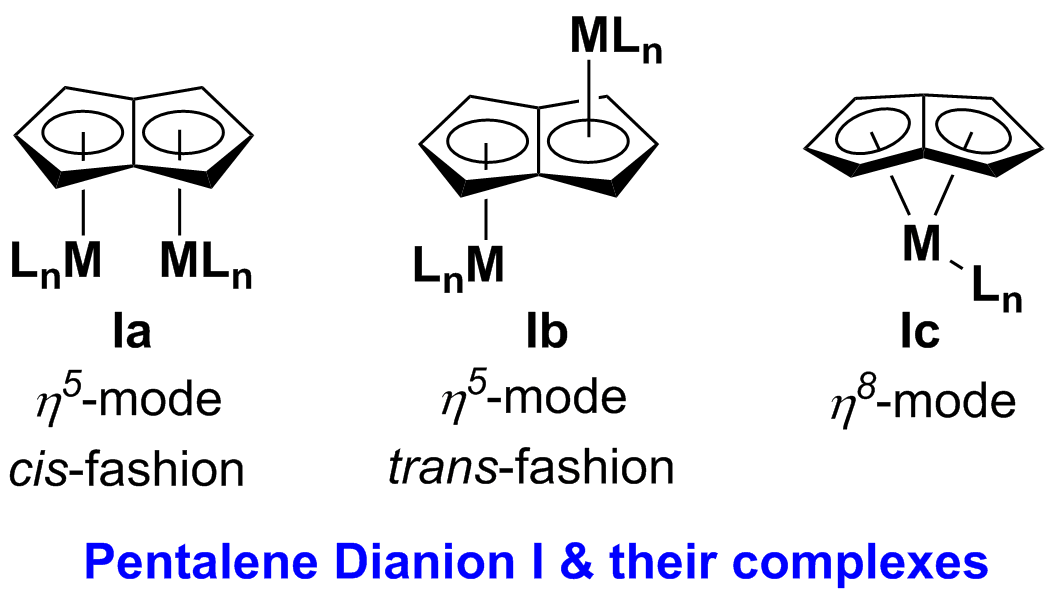 戊搭烯(pentalene)及其衍生物包括苯并戊搭烯(dibenzopentalene)是一类具有反芳香性(antiaromatic)的有机分子,由于其独特的结构和性质近年来受到重视;而戊搭烯类双负离子具有芳香性,在配位化学中作为配体很久以来得到应用。但是,如图所示,Ic配位模式(η8模式)的配合物在主族金属中还没有报道。本工作是第一例有关报道。并且利用该配合物可以合成官能团化的反芳香性苯并戊搭烯。因此,本文被德国应用化学选为封面论文。