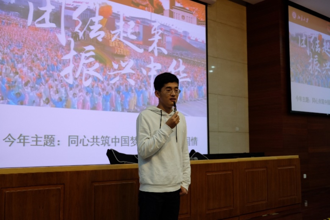 随后, 2017级本科生、学生会主席蔡奕腾同学为大家分享了自己参加一二九合唱比赛并夺冠的经历,以及学生会在此次活动中的工作。除了协调安排各次排练、演出任务、排练间隙的精彩活动,学生会还将为大家准备丰富的慰问物资,做好后勤保障工作,以促进大家的排练。