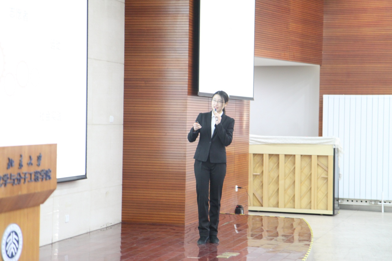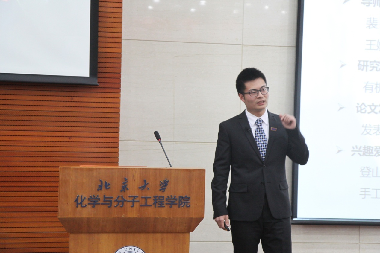 2014级研究生顾春晖同学作为学术科研代表,在博士期间发表高水平SCI论文12篇,其中第一作者7篇,获得了研究生国家奖学金、化学之星、北京大学三好学生等多项奖励。他向同学们介绍了“要”成果、“拼”成果和“熬”成果的艰辛却丰富的科研经历,也展现了自己在音乐、绘画、摄影等方面的闲情逸致。顾春晖同学告诉大家,作为化学学院几百名普通人之一,坚守自己的本职工作、坚守科研的信念、坚守一名普通人的幸福,即使未曾有过大放异彩的青春,还是能收获精彩且有意义的人生。他向大家展现了一个严谨求实、爱好广泛的学术科研代表的风采。化学学院党委副书记赵美萍为顾春晖同学颁发了学术科研榜样的奖状和奖杯。