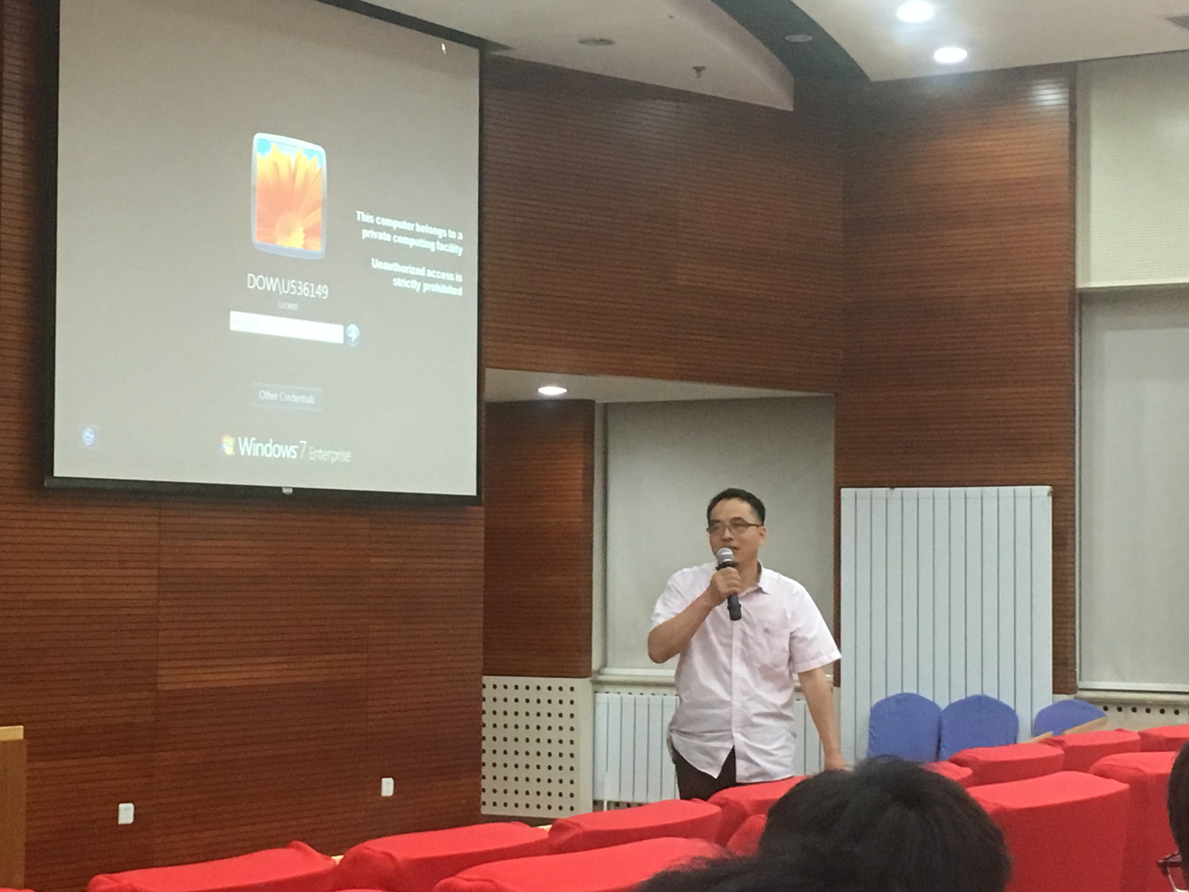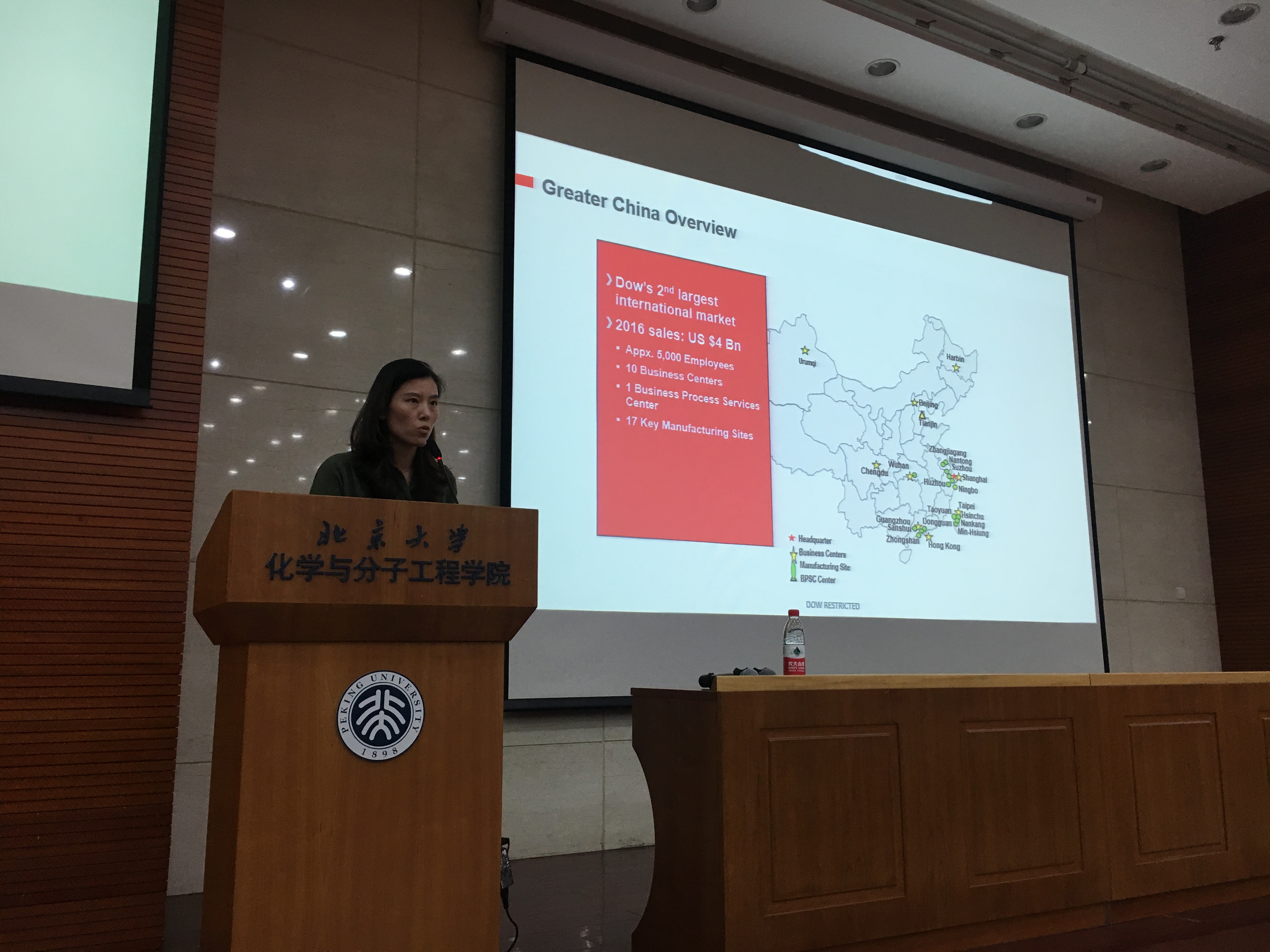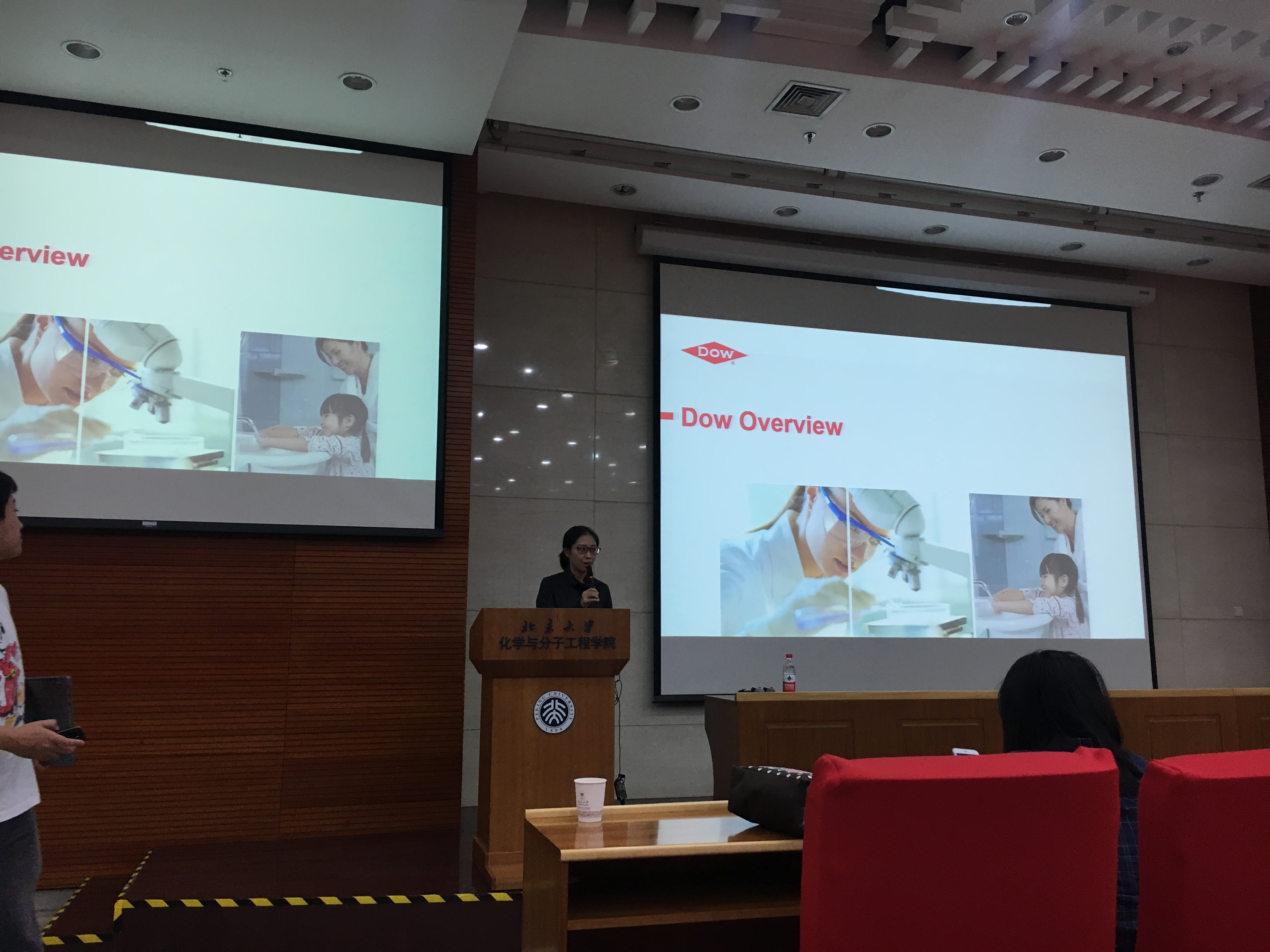 首先,陶氏化工的张蓓蕾主任从公司的技术架构、业务职能与核心研发部门等方面向大家介绍了陶氏化工的概况,并从陶氏化工对试验室安全的要求向大家说明试验室安全的重要性,提醒同学们提高实验室安全的意识。