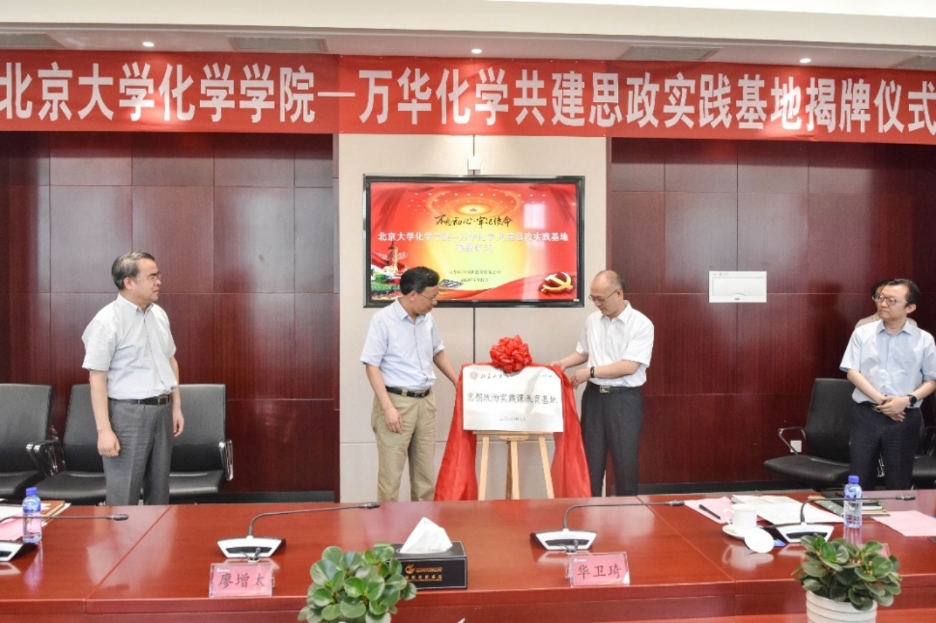 下午,北京大学化学学院-万华化学思政实践基地揭牌仪式在万华集团总部举行。化学学院党委书记马玉国,万华化学集团党委书记、董事长廖增太等出席仪式,共同为思政实践基地揭牌。马玉国在致辞中鼓励同学们,在疫情之下,更要珍惜这次来之不易的学习机会,带着谦虚好问的学习态度,带着深入探索的科研精神,带着北大学子勇于担当敢于创新的时代精神,学习企业先进的管理经验,学习企业担负民族大业的首创精神,学习万华将企业的命运与国家化学工业紧密相连的家国情怀。廖增太向同学们介绍了万华化学集团是如何一步一个脚印走到今天的,同时分享了习近平总书记2018年到万华化学集团考察时的场景。