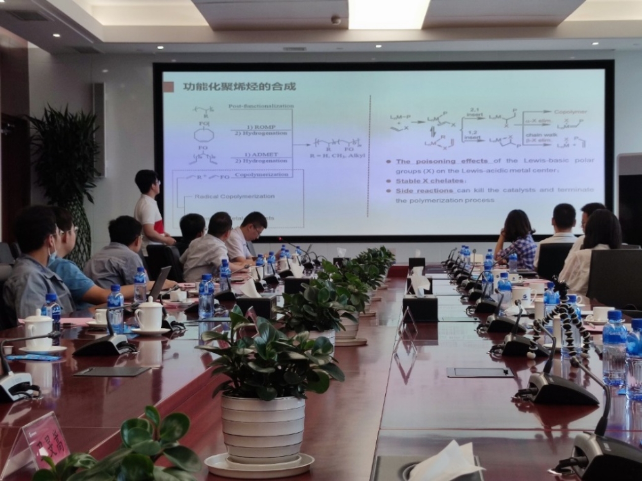 揭牌仪式结束后,万华化学科技管理部部长介绍了万华全球研发中心情况,同学们也更加深入了解了产品研发过程。思政实践助教团中的研究生李昊、贾凤艳、华汪德、黄可闻和杨帆五位同学就自己的研究课题做了专题报告,并与在座科研专家做了深入交流。