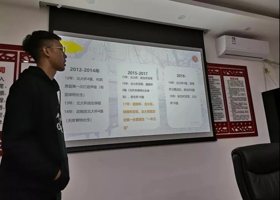 首先,学生会主席蔡奕腾对球队总体人数、年级分布和上学年战绩作了简单介绍。随后,各球队负责人介绍了队伍上一年的发展、在赛场上的表现、日常训练及活动等情况,展示了队伍的独特风采,也对接下来球队的目标与发展方向提出了展望。
