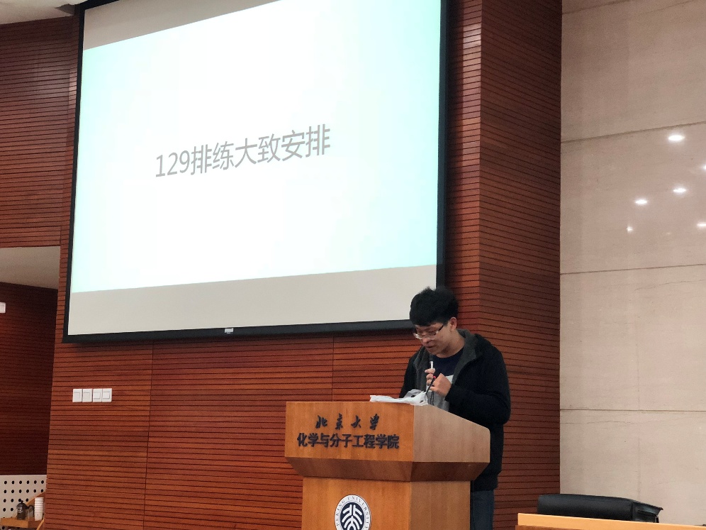 10月18日晚19点,北京大学化学与分子工程学院“一二·九”合唱比赛动员会在A204成功举行。学院团委书记张舒,学工办老师汪卓群、尹航、刘展宏出席本次会议,全体2018级本科生参与了本次动员会。会议由2018级本科生辅导员李珣主持。