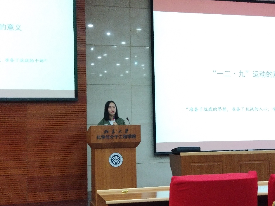 随后,2016级本科生王文韬同学为大家分享了自己参加“一二·九”合唱比赛的感受。他告诉同学们,“一二·九”合唱排练是难得的集体活动,在课业较重的化学学院,一定要珍惜这次彼此加深了解、增进同学情感的机会。
