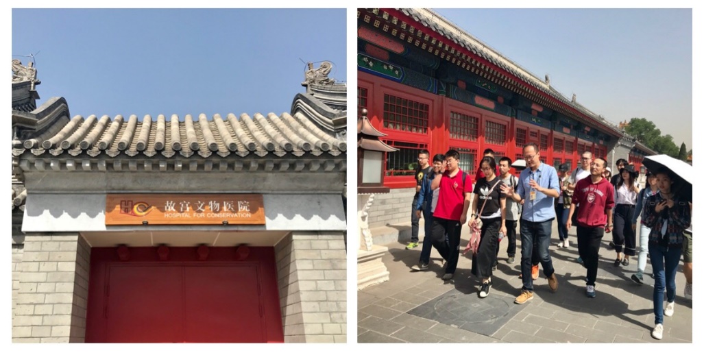 随后,在书画保护文化部重点实验室工作人员的带领下,同学对文物修护工作室进行了参观。文物修护工作室承担着故宫院珍藏的书画、木器、漆器、百宝嵌、金属、钟表、陶瓷、石质、织绣、唐卡、壁画、油画、建筑彩画等文物的修护和复制工作,为文物保驾护航。在这里,同学们亲眼见到纪录片《我在故宫修文物》中修复的金发塔、唐三彩马以及被完整复原的景德镇御窑烧造的瓷器残次品,修复大师的精湛技艺深深的震撼了同学们。