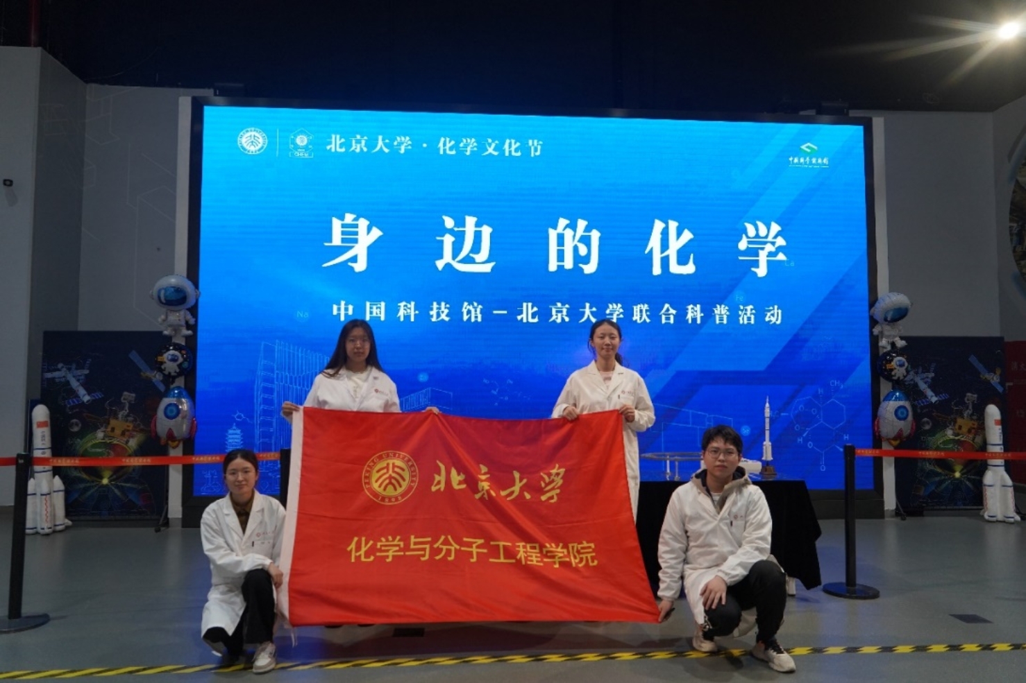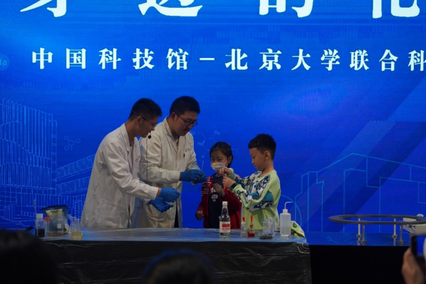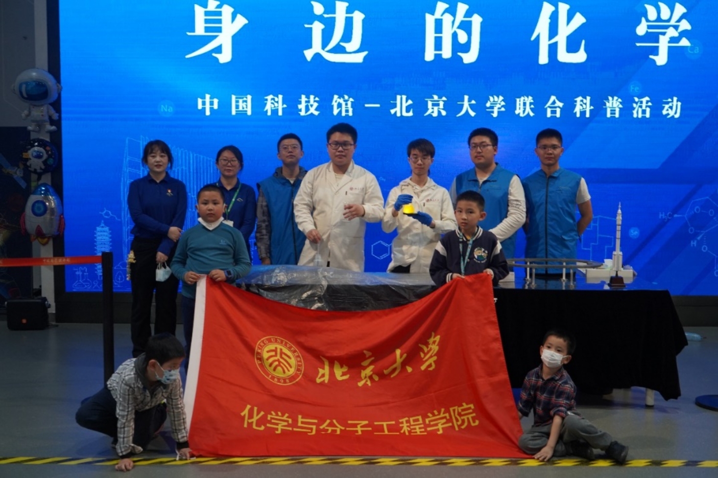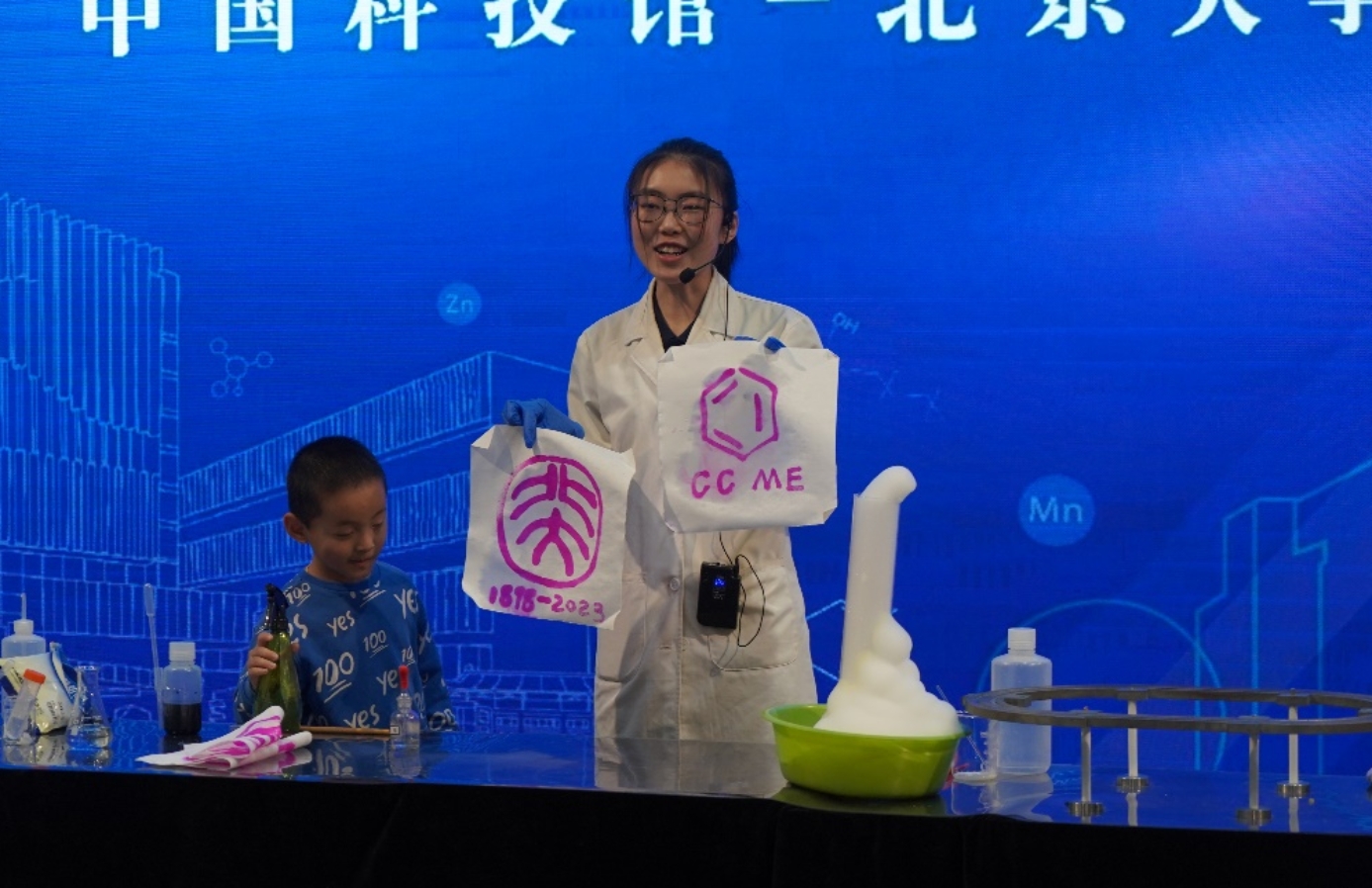 习近平总书记在党的二十大报告中指出:“教育、科技、人才是全面建设社会主义现代化国家的基础性、战略性支撑”。为践行二十大精神,发挥高校社会服务功能,深入开展劳动育人,助力青少年科普工作,北京大学化学与分子工程学院2020级本科生党支部同中国科技馆于2023年五一国际劳动节暨北京大学125周年校庆之际共同举办了“身边的化学”主题科普活动。