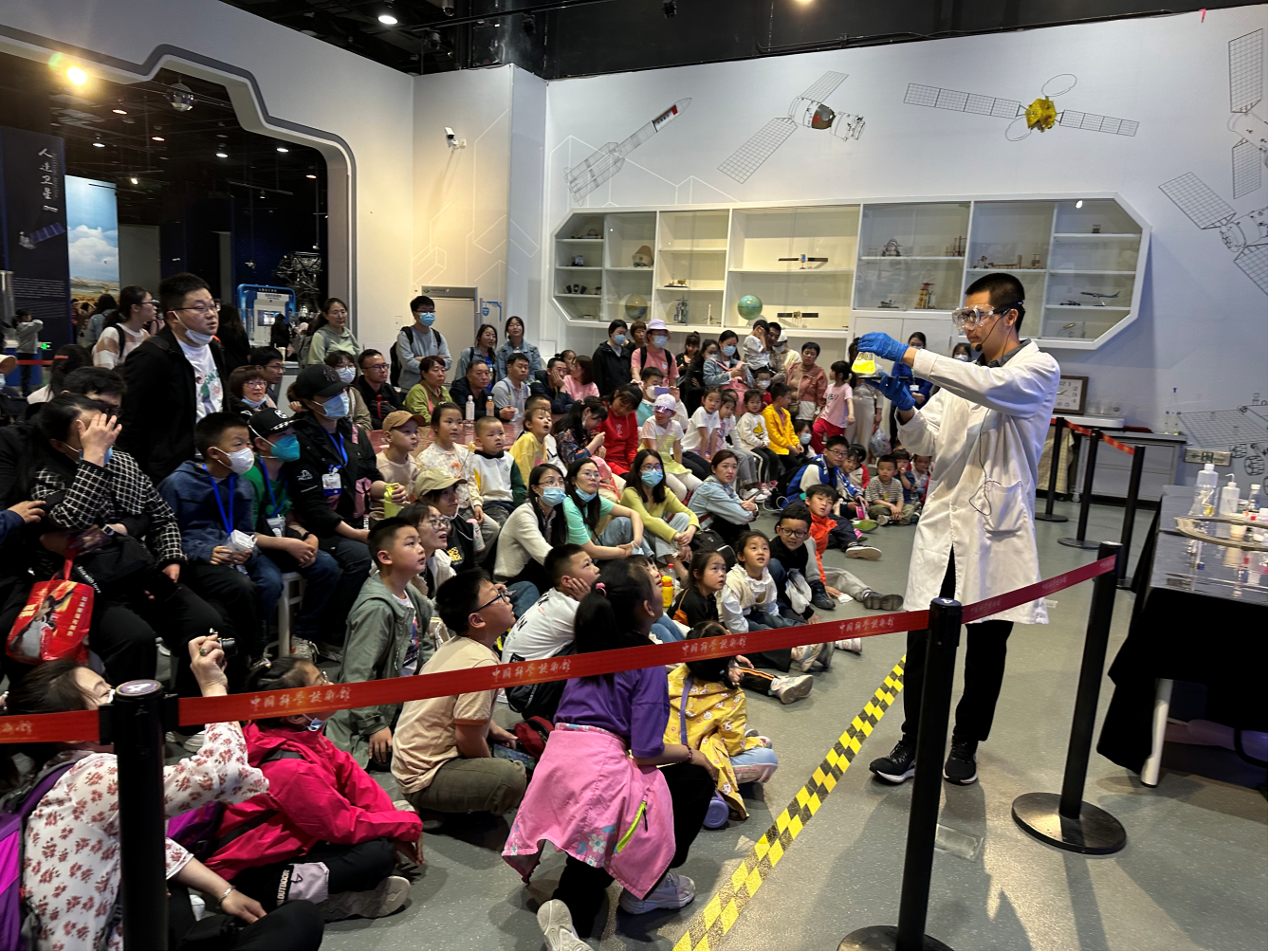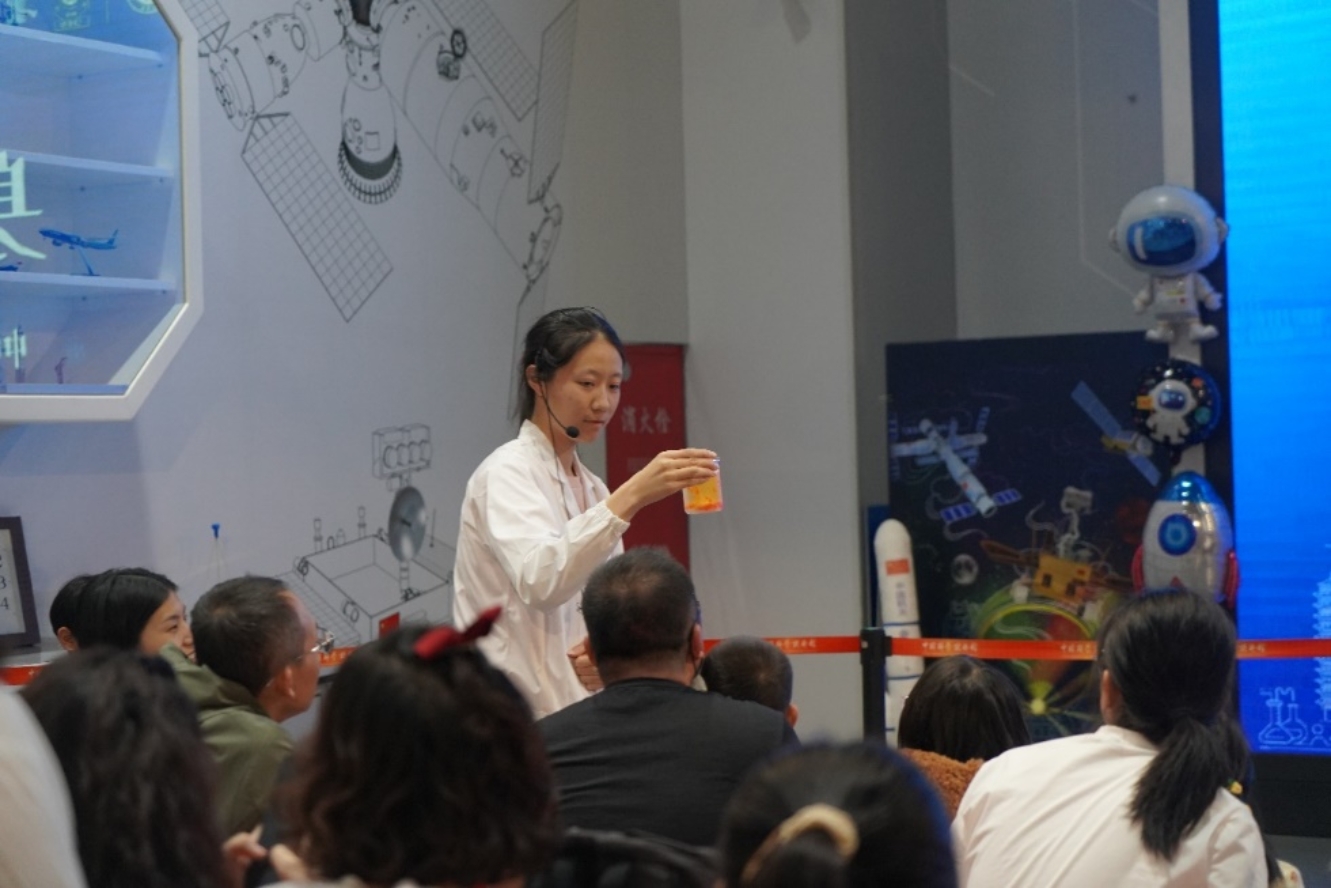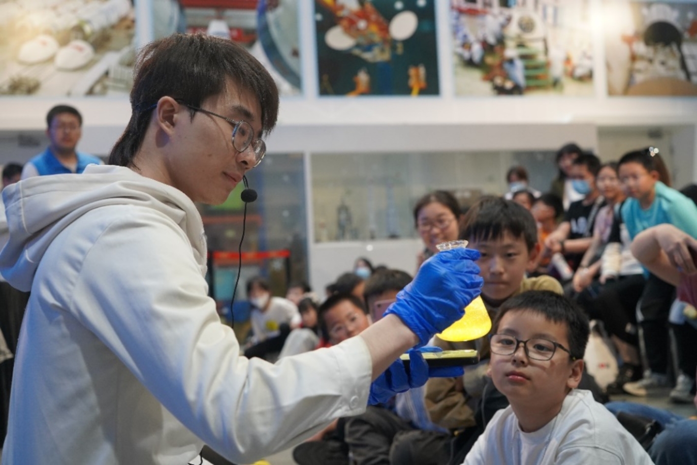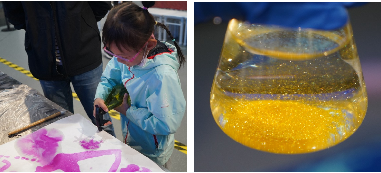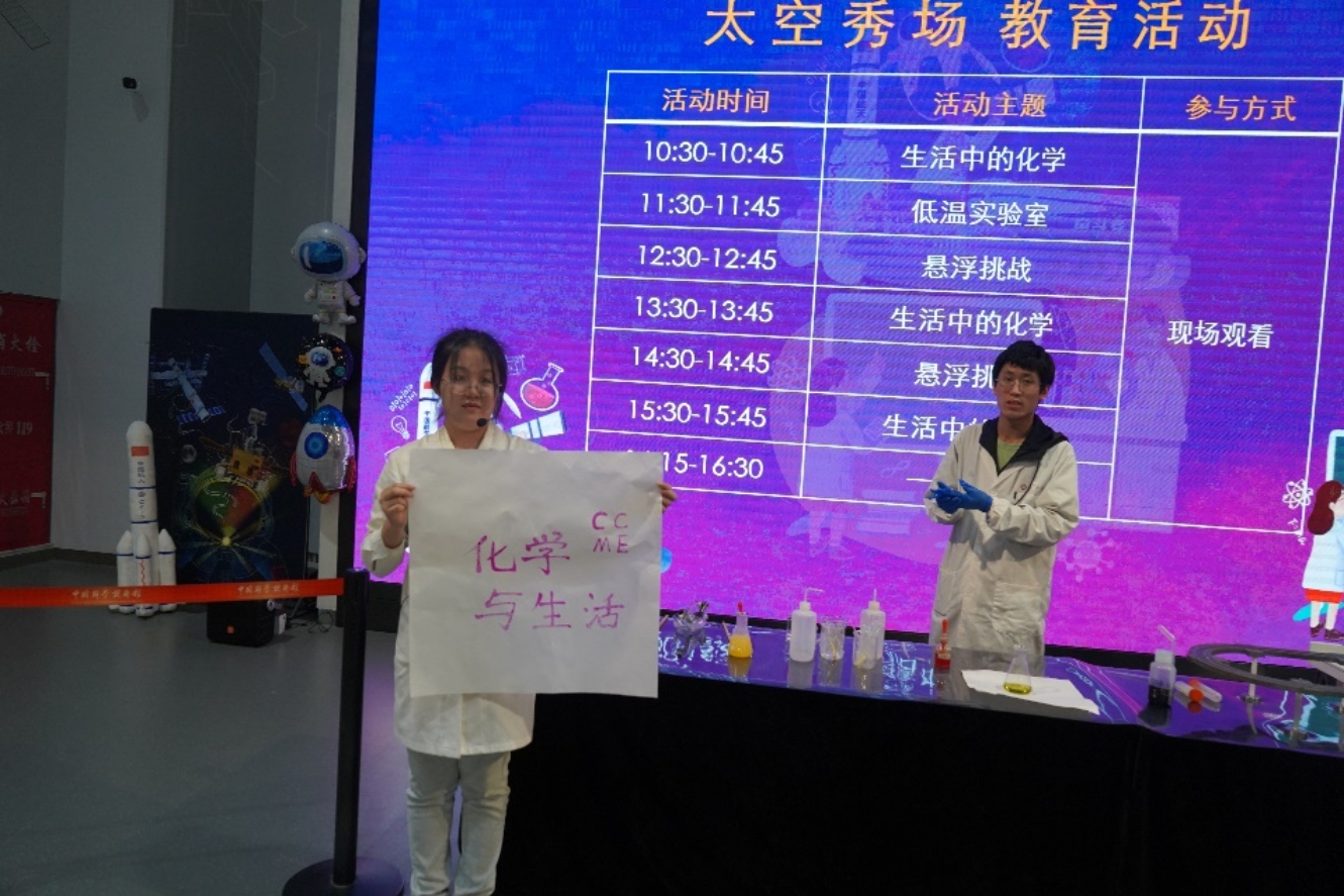 来自化学学院各年级的21名志愿者利用五一假期在中国科技馆“太空秀场”共开展了15场主题科普活动,为现场的青少年们带来了“大象牙膏”“水中花园”“纸张书写魔术”“黄金雨”“火山喷发”“蓝瓶子”“吸水魔术”等多个实验。实验有些具有精彩美丽的实验现象,有些和生活紧密相关,有些则颇有趣味性,每场都吸引上百名观众驻足观看。