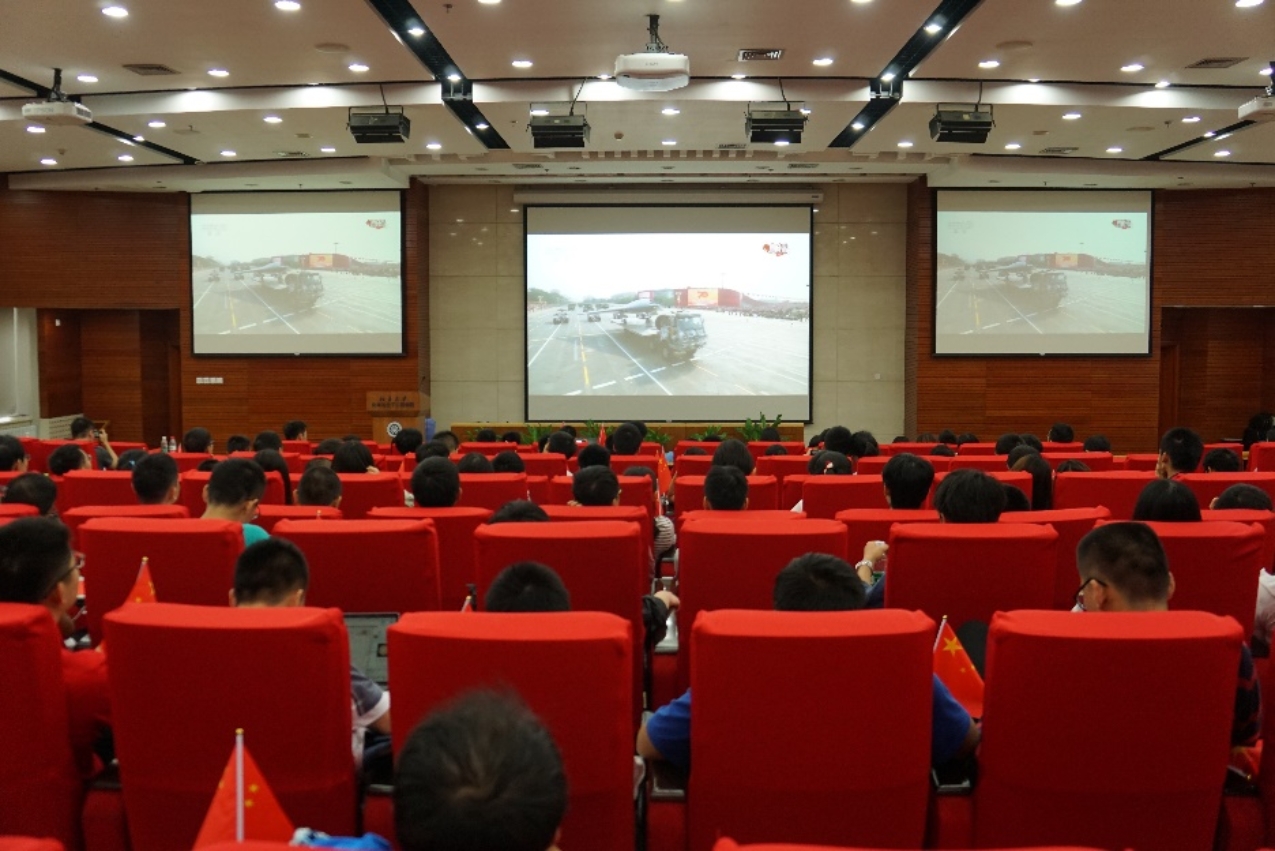 上午9时,参加活动的150余名师生在A204集合完毕,开始集体收看中央电视台国庆70周年特别节目。看到各游行方阵训练筹备的幕后故事,来自祖国各地的人民群众、以及海外华人表达对祖国的爱和祝福,大家无不有着深深的感触。