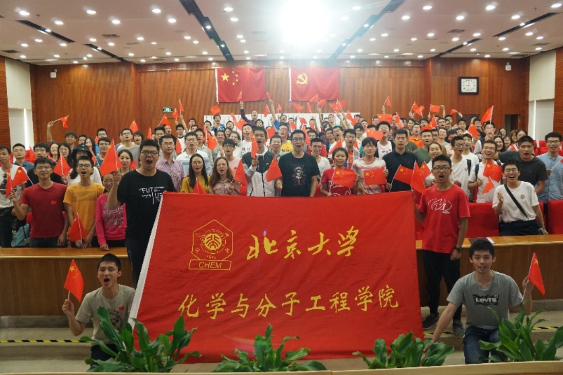 2019年10月1日上午,庆祝中华人民共和国成立70周年大会在天安门广场盛大举行,北京大学化学学院104名师生代表参与了现场群众游行、合唱和志愿服务等环节。为激发爱国主义情怀,培育爱国情操,感受祖国日新月异的发展变化,增强对祖国的认同感和自豪感,化学学院组织了师生代表在A204会议室观看大会直播,来自各年级、各党团支部的150余名师生代表到场参加。
