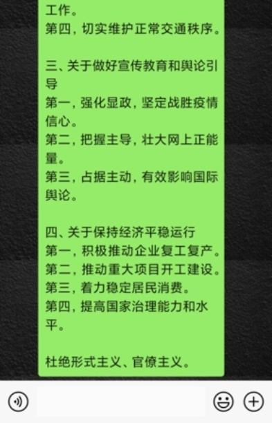 首先,赵自然同志带领大家学习了习近平总书记的讲话内容。自疫情发生至今,党中央十分关注此次疫情,一直高度重视和指导防疫抗疫工作。讲话内容包括1)关于疫情防控形势和做好疫情防控重点工作;2)关于做好维护社会稳定工作;3)关于做好宣传教育和舆论引导;4)关于保持经济平稳运行。随后,赵自然同志带领大家简要回顾了《回信》内容和精神。
