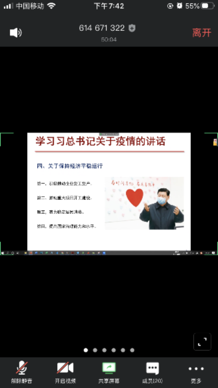 随后,党支部全体成员在张攀的带领下学习了习近平“同舟共济,坚决打赢疫情防控阻击战”的重要讲话。讲话强调“同时间赛跑、与病魔较量,坚决遏制疫情蔓延势头,坚决打赢疫情防控狙击战。”习近平总书记的重要讲话及决策部署在支部成员中引起强烈反响。大家表示,要坚决贯彻落实党中央决策部署,在以习近平同志为核心的党中央坚强领导下,坚定信心、同舟共济,服从上级安排,坚决打赢抗疫攻坚战,保持科研状态,停课不停学。