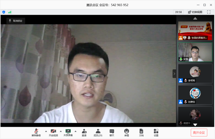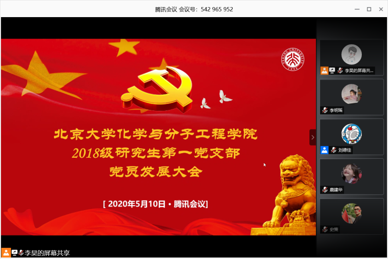 2020年5月10日晚,化学与分子工程学院2018级研究生第一党支部以腾讯会议为平台召开党员发展大会,30名支部成员参加会议,本次支部大会由党支部书记李昊同志主持。