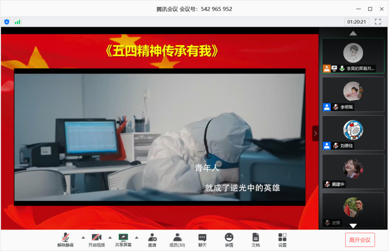 会议第二项,支部书记李昊同志为大家讲解五四精神,并播放《五四精神传承有我》的纪录片。会议第三项,支部宣传委员李明瑶同志组织知识竞答活动,内容涉及到党章党史、疫情防控及五四青年节的相关知识,通过知识竞答,大家巩固了相关理论知识,进一步增强了对党的归属感,也培养了同学们团队合作的意识。