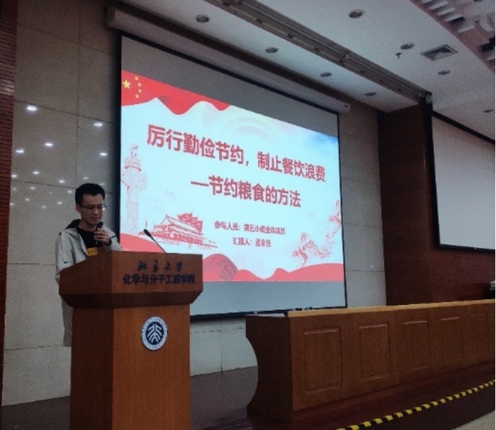 为了积极响应党中央关于节约粮食、杜绝浪费的号召,传承伟大抗疫精神、践行爱国卫生运动,化学与分子工程学院2020级研究生党支部于11月27日晚在化学学院A204报告厅召开党团日活动交流会。会议由党支部书记于珮瑶主持,支部全体党员及入党积极分子参加活动。