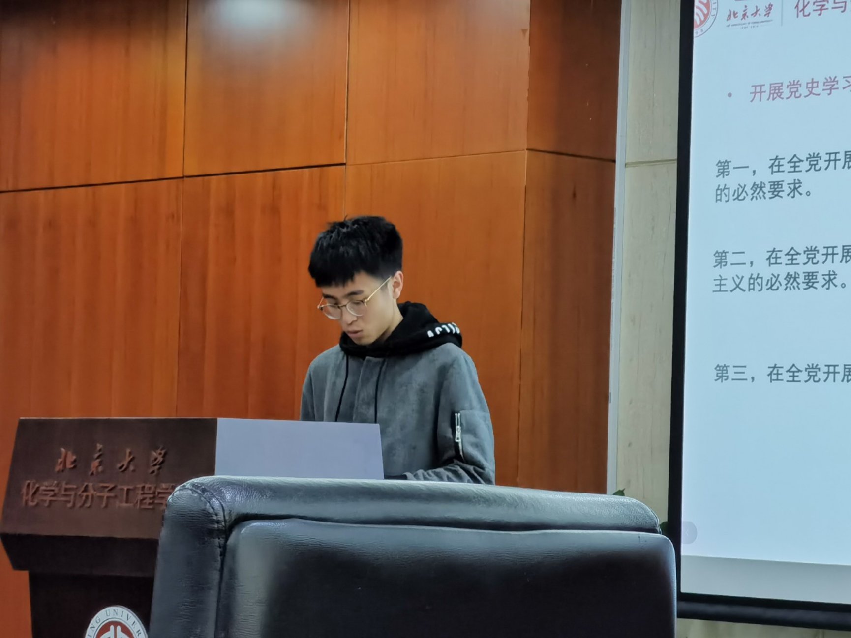 首先,党支部书记詹佶睿同志为支部同志进行党课,值中国共产党建党100周年之际,詹佶睿给支部成员强调了开展党史学习的教育意义以及开展党史学习教育要突出的重点。北京大学作为五四运动的发起地,并且为新文化运动、五四运动、马克思主义传播和中国共产党建立创造了条件,詹佶睿也对北京大学在中国共产党建立过程中的作用进行了陈述。结合习近平总书记五次给北大师生的回信,詹佶睿同志也号召支部成员努力践行习总书记对当代青年的嘱托,勇做走在时代前面的奋进者、开拓者、奉献者。随后,对于最近顺利召开的两会,詹佶睿分别进行了简要的介绍,并同支部成员一起学习了两会精神。最后,詹佶睿也对本学期的支部计划与安排进行了简单说明,并号召大家积极参与建党百年系列活动,在场成员也纷纷响应。