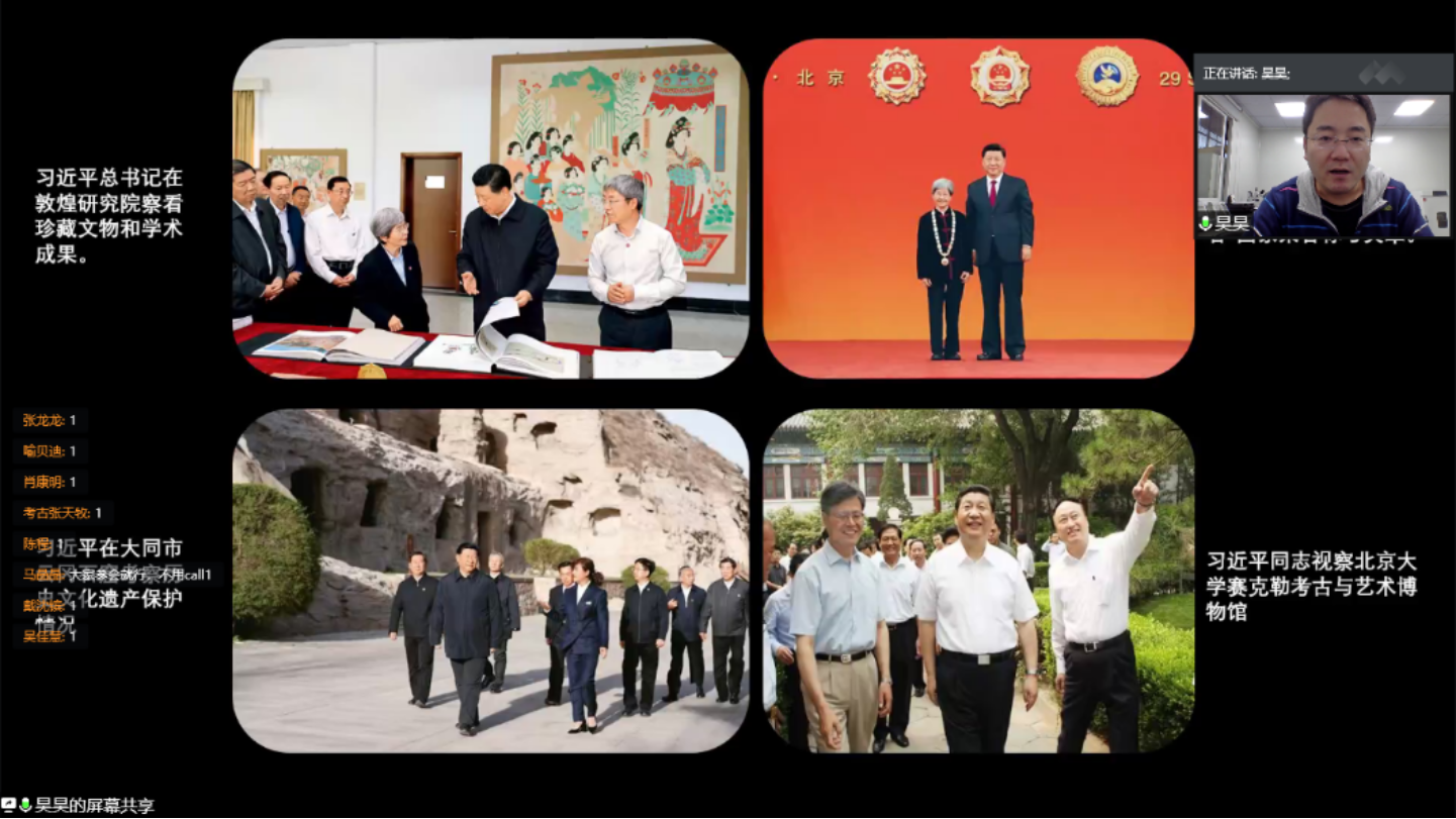 赵昊老师首先从文化自信的内涵出发,介绍了考古工作的重要价值与意义。赵老师表示,习近平总书记高度重视我国考古工作,也多次提出要让更多年轻人走进、热爱、投身于考古事业中。文化自信也是一个民族、一个国家以及一个政党对自身文化价值的充分肯定和积极践行,并对其文化的生命力持有的坚定信心。中华传统文化流淌于中国五千年的历史长河之中,而认识历史离不开考古,考古工作的目的就是更好地认识源远流长、博大精深的中华文明,为弘扬中华优秀传统文化、增强文化自信提供坚强支撑。北大学子作为新时代青年的领跑者,应积极响应总书记的号召,主动学习和了解中国考古事业的新发展、新研究,这也正是本次党课的核心要义和根本出发点。