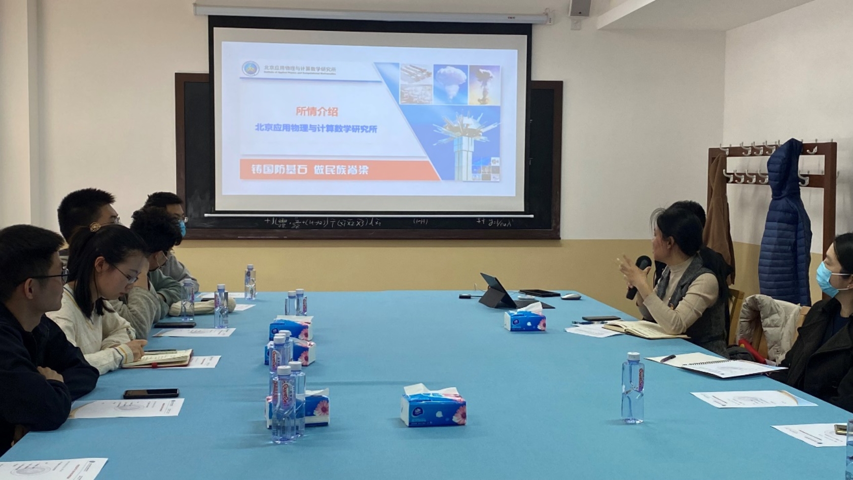 对九所历史有了更全面的了解后,支部同学们向九所的老师们介绍了自己的科研方向,并对九所的就业和核物理未来的发展进行学习讨论。专职辅导员季宇老师同时也向九所老师们介绍了化学与分子工程学院的历史和基本情况,季宇老师强调,“同中物院九所一样,化学院对学生的培养方向始终是向同国家发展所需要的人才看齐,国家需要什么,我们就培养什么。”支部书记崔若瑶同九所机关的支部书记就党员培养和党日活动方面开展交流讨论,互相汲取党建工作的经验与教训。