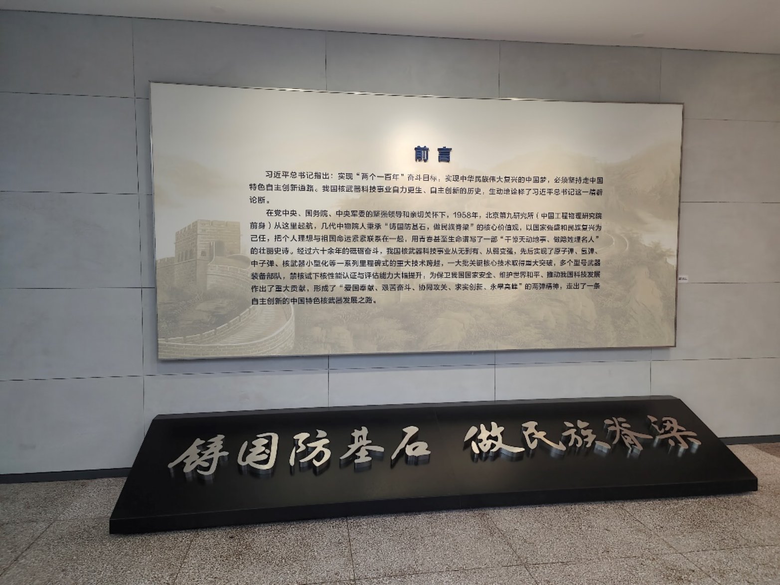 之后同学们在讲解人员的带领下参观了九院的所史展览,进一步深入学习了“两弹一星”精神,感受到了我国核物理事业发展中科研人员的坚信付出,了解了我国原子弹理论突破时期“三本书”和“九次计算”的历史故事,同学们理解了我国短期能够实现原子弹、氢弹突破的背后离不开邓稼先、于敏、周光召、彭桓武和无数奋斗在一线科研工作者们的努力奋斗。
