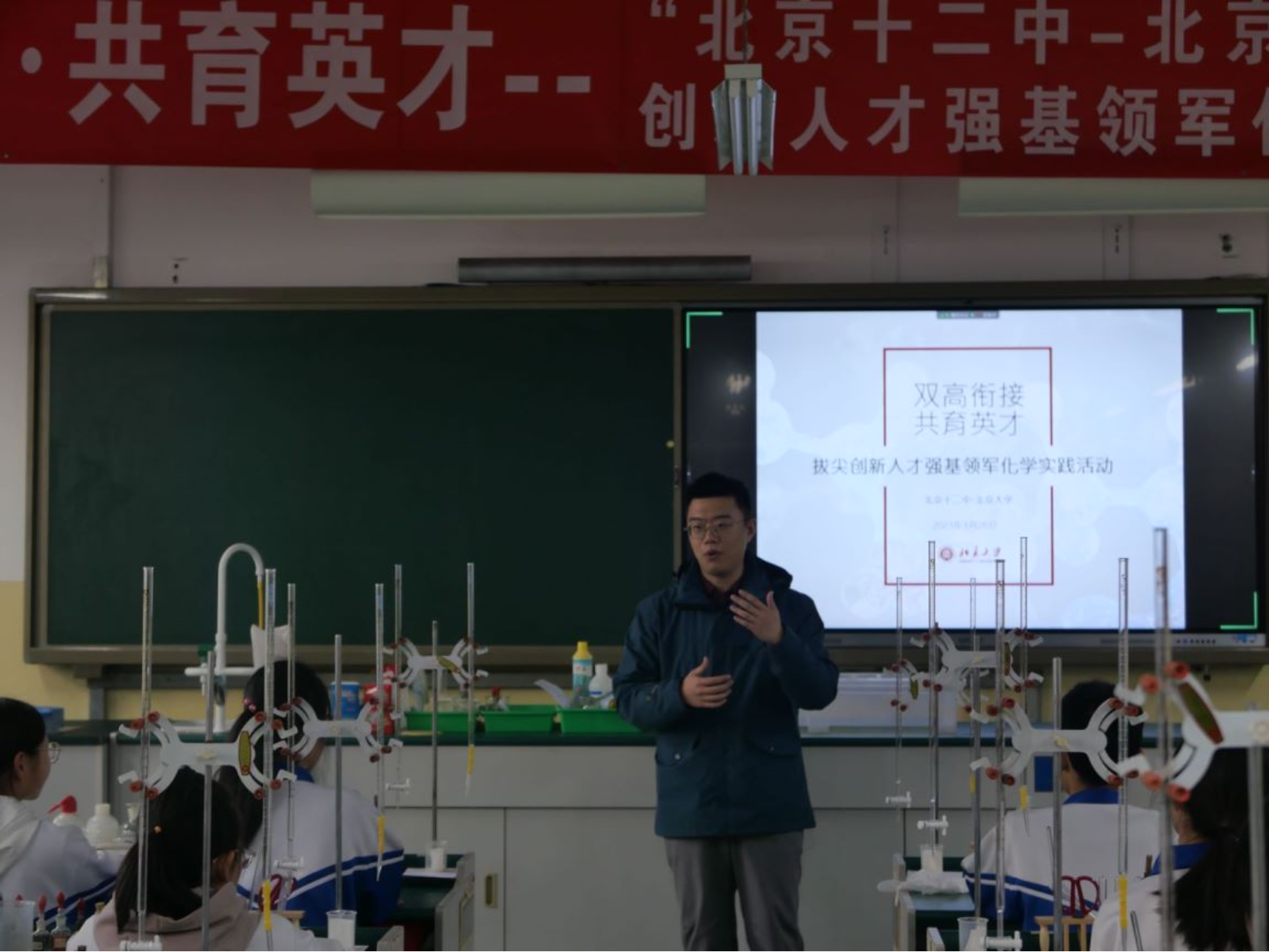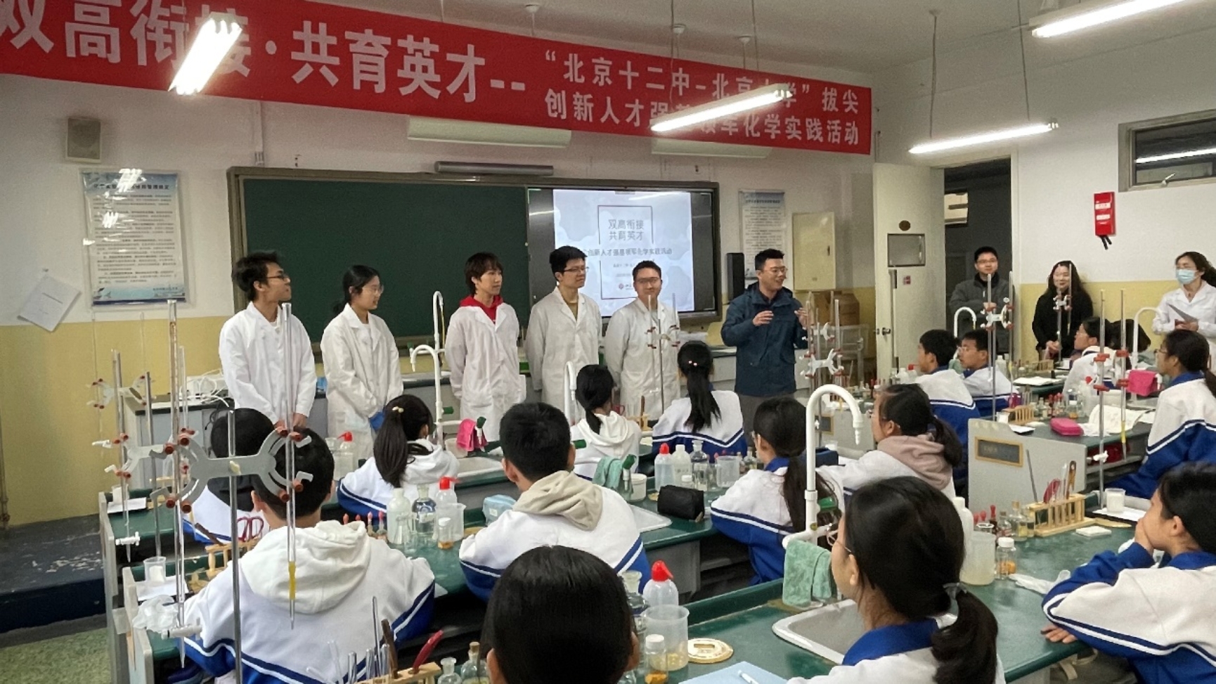 为全面贯彻党的二十大精神,发挥高校社会服务功能,弘扬雷锋精神,2023年3月26日上午,北京大学化学与分子工程学院2020级本科生党支部在北京十二中开展了面向初一、初二学生的化学科普活动。本次活动也受到了《现代教育报》的关注和报道。
