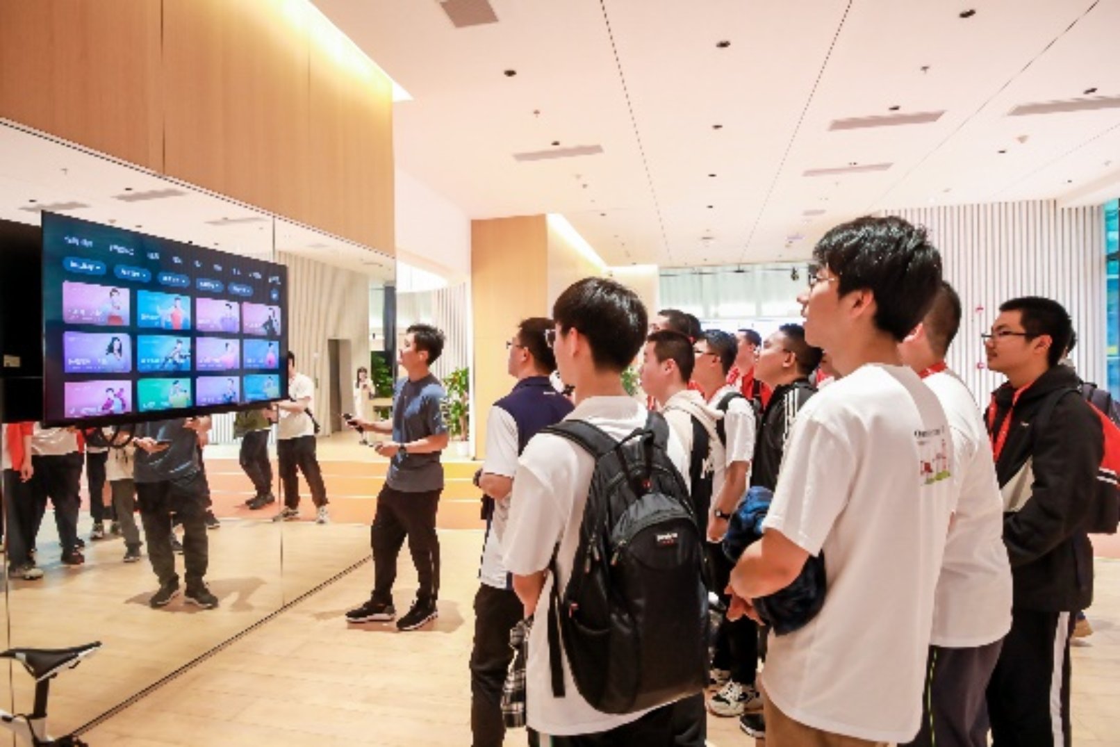 随后,同学们在带领下参观了华为运动健康实验室。在这里,华为把数字化融入到了各种运动场景和健身设备中,用数字技术为体育运动提供科学指导。在讲解后,同学们迫不及待地开始了体验,攀岩、高尔夫、羽毛球、健身器材……在汗水中体验数字化生活的精彩。