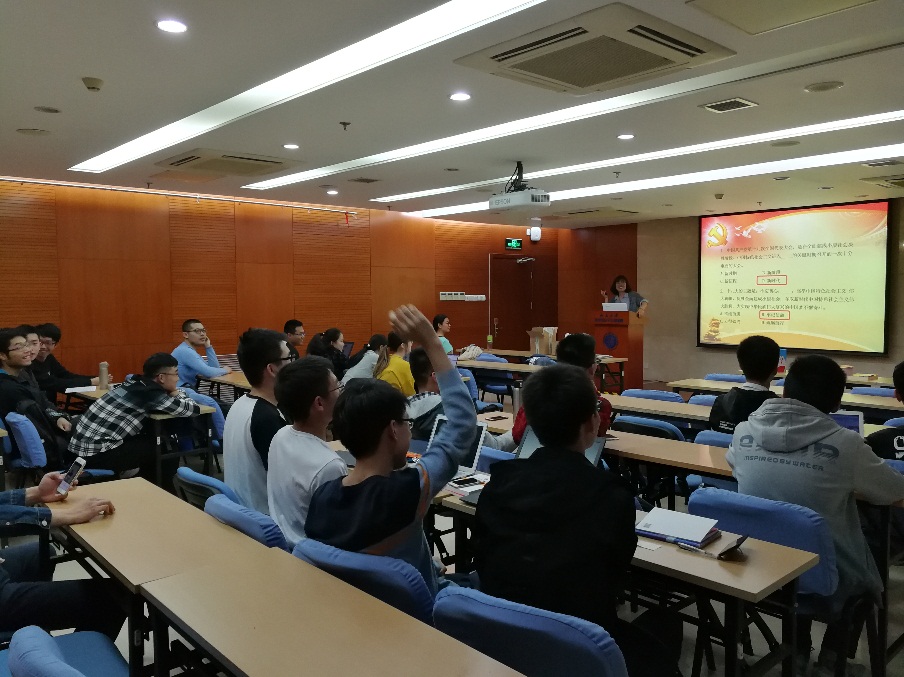 本次竞答比赛由2015级本科生党支部书记阳彝栋和2016级本科生党支部书记常文英共同主持。在比赛开始前,为了让两个支部的同学充分交流,增进友谊,采取抽签的方式,将参与的同学们随机分为4个临时组成的小组,每组均有5人左右的组员。本次竞赛内容主要以《中国共产党章程》的基本知识为重点,也包含十九大报告、《中国共产党廉洁自律准则》、《中国共产党纪律处分条例》和刚刚结束的全国人民代表大会政府工作报告中的内容,旨在全面考察支部同学们对党的理论知识的学习掌握程度和对国家大事的关注度。同学们对于党的理论知识学习较为充分,探讨竞答问题气氛活跃。